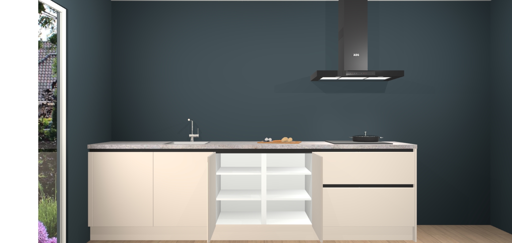 De softclose deuren openen en sluiten is ook heel eenvoudig - geniet van een moeiteloze keukenervaring, zelfs als er kinderen rondlopen. Voor extra gemak bij het plaatsen van uw bestelling bieden we ook een upgrade naar een kookplaat met geïntegreerde afzuiging.