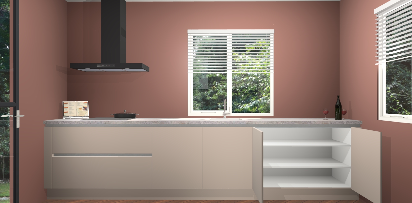 In deze box zijn alle kleuren verzameld van de deuren en werkbladen. Vraag de gratis kleurenbox aan en kijk thuis rustig verder!
