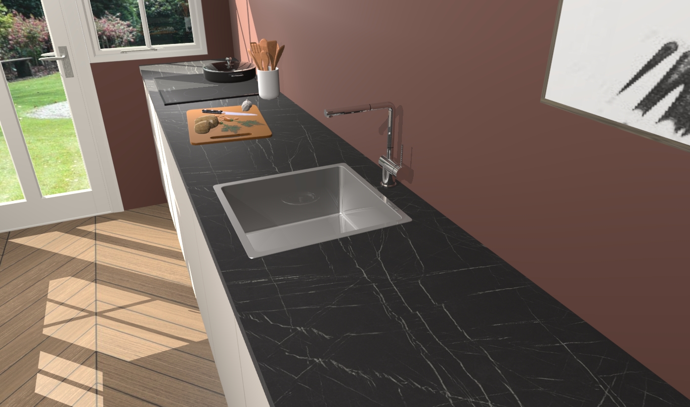 - Bij een hoekwerkblad zijn de hoeken in gevreesd en op maat gemaakt