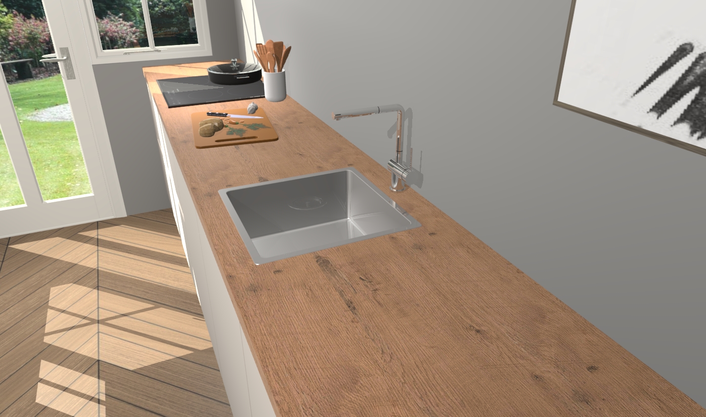 - Bij een hoekwerkblad zijn de hoeken in gevreesd en op maat gemaakt