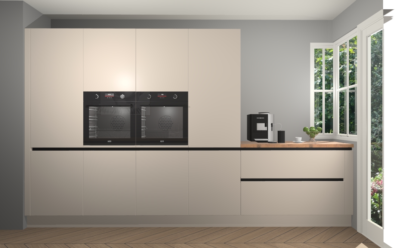 Een stijlvolle en praktische keuken als deze mag gezien worden. Dankzij de prachtige kasjmier matte afwerking wordt de keuken gemakkelijk het middelpunt van uw huis - hij ziet er geweldig uit onder allerlei lichtomstandigheden, van dag tot nacht!