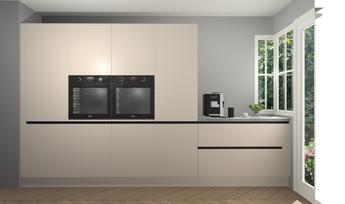 Een stijlvolle en praktische keuken als deze mag gezien worden. Dankzij de prachtige kasjmier matte afwerking wordt de keuken gemakkelijk het middelpunt van uw huis - hij ziet er geweldig uit onder allerlei lichtomstandigheden, van dag tot nacht!