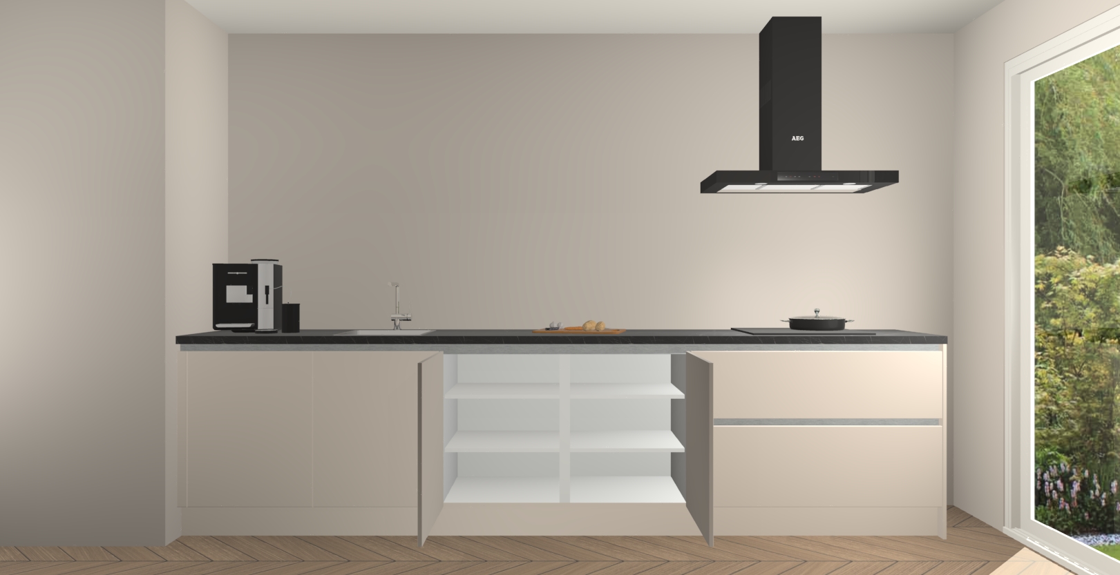 De softclose deuren openen en sluiten is ook heel eenvoudig - geniet van een moeiteloze keukenervaring, zelfs als er kinderen rondlopen. Voor extra gemak bij het plaatsen van uw bestelling bieden we ook een upgrade naar een kookplaat met geïntegreerde afzuiging.