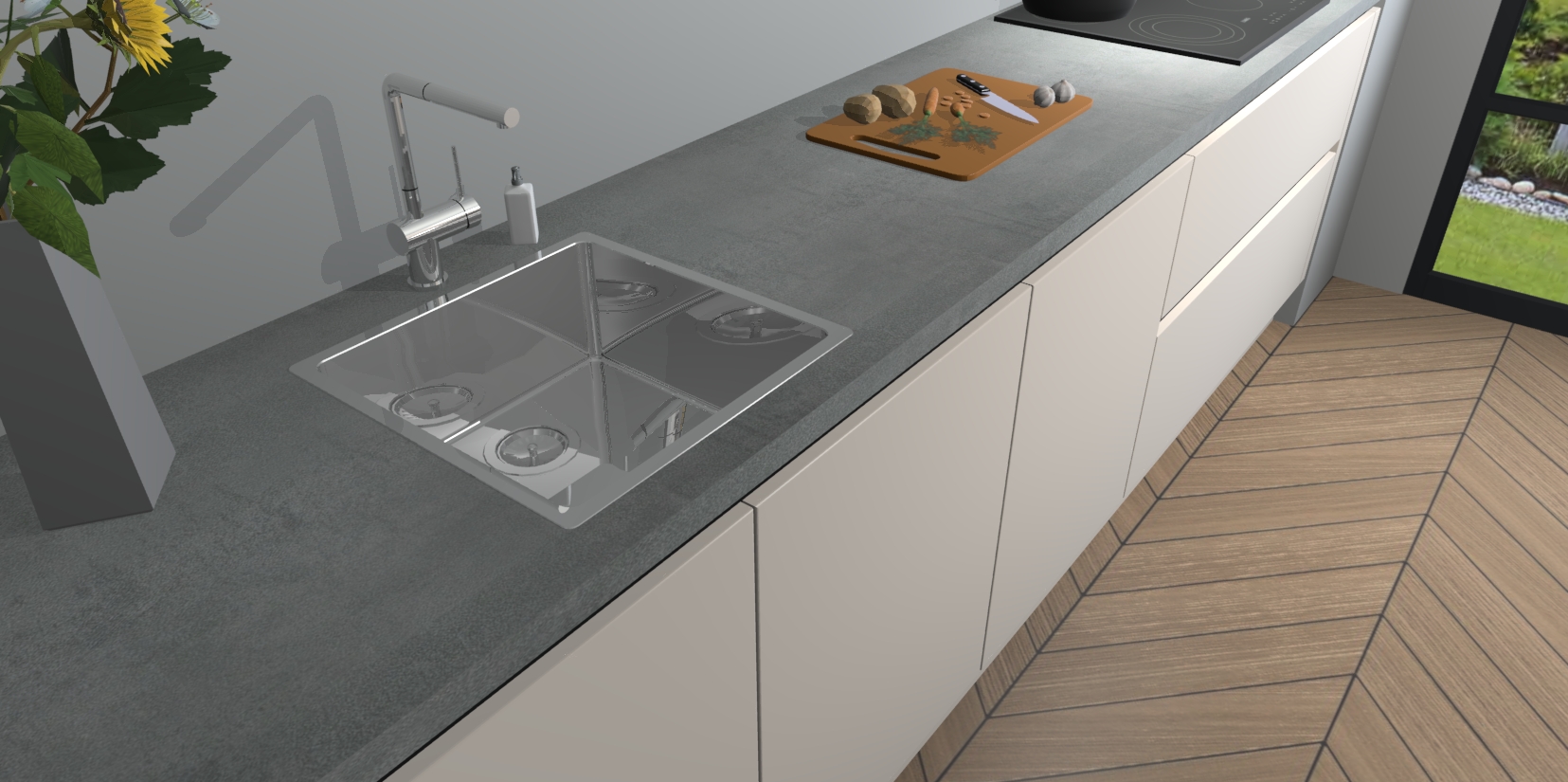 - Bij een hoekwerkblad zijn de hoeken in gevreesd en op maat gemaakt