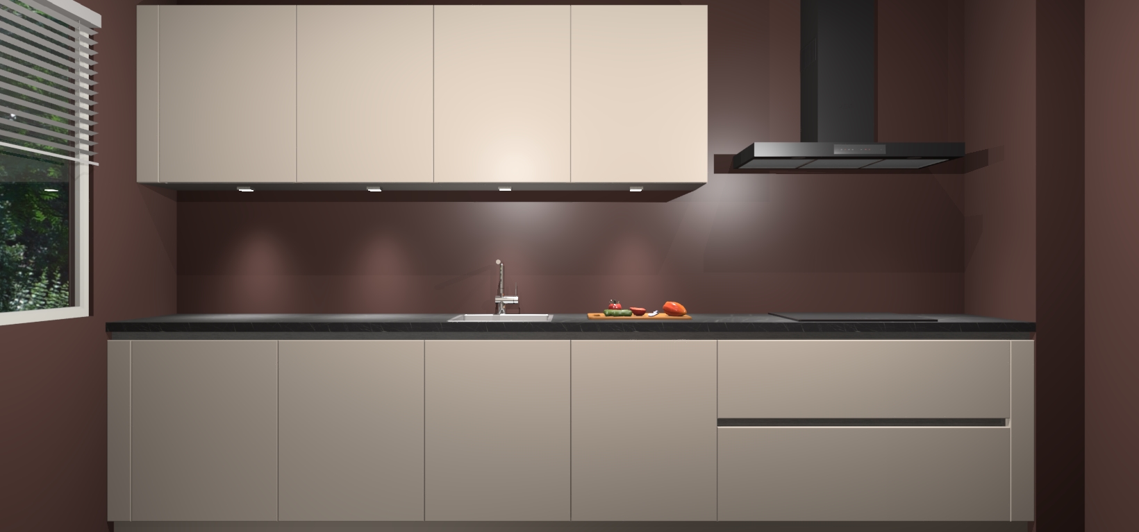 Een stijlvolle en praktische keuken als deze mag gezien worden. Dankzij de prachtige kasjmier matte afwerking wordt de keuken gemakkelijk het middelpunt van uw huis - hij ziet er geweldig uit onder allerlei lichtomstandigheden, van dag tot nacht!