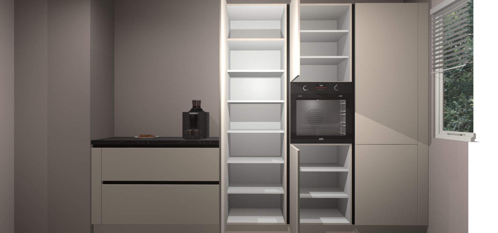 Een stijlvolle en praktische keuken als deze mag gezien worden. Dankzij de prachtige Kasjmier matte afwerking wordt de keuken gemakkelijk het middelpunt van uw huis - hij ziet er geweldig uit onder allerlei lichtomstandigheden, van dag tot nacht!