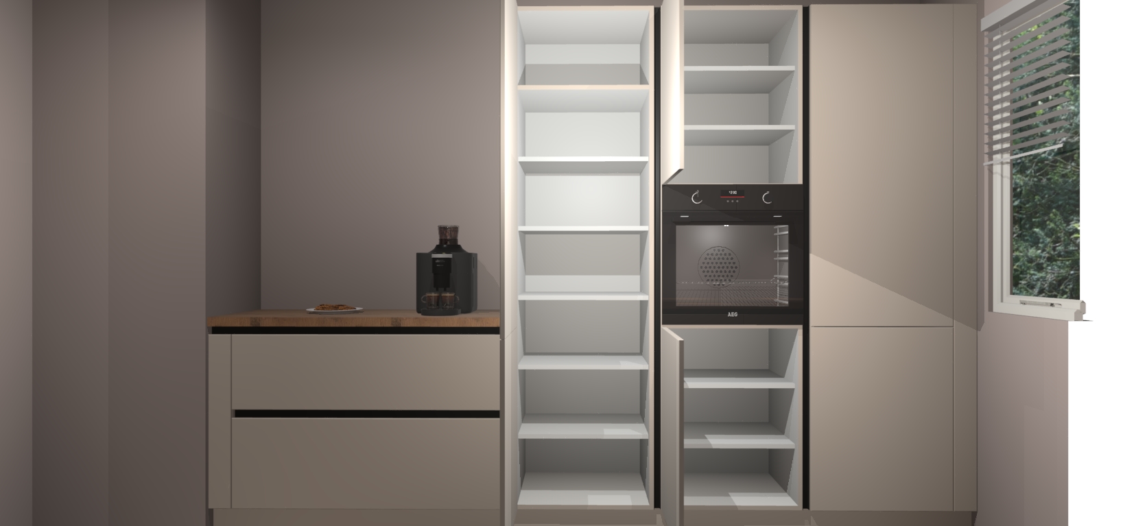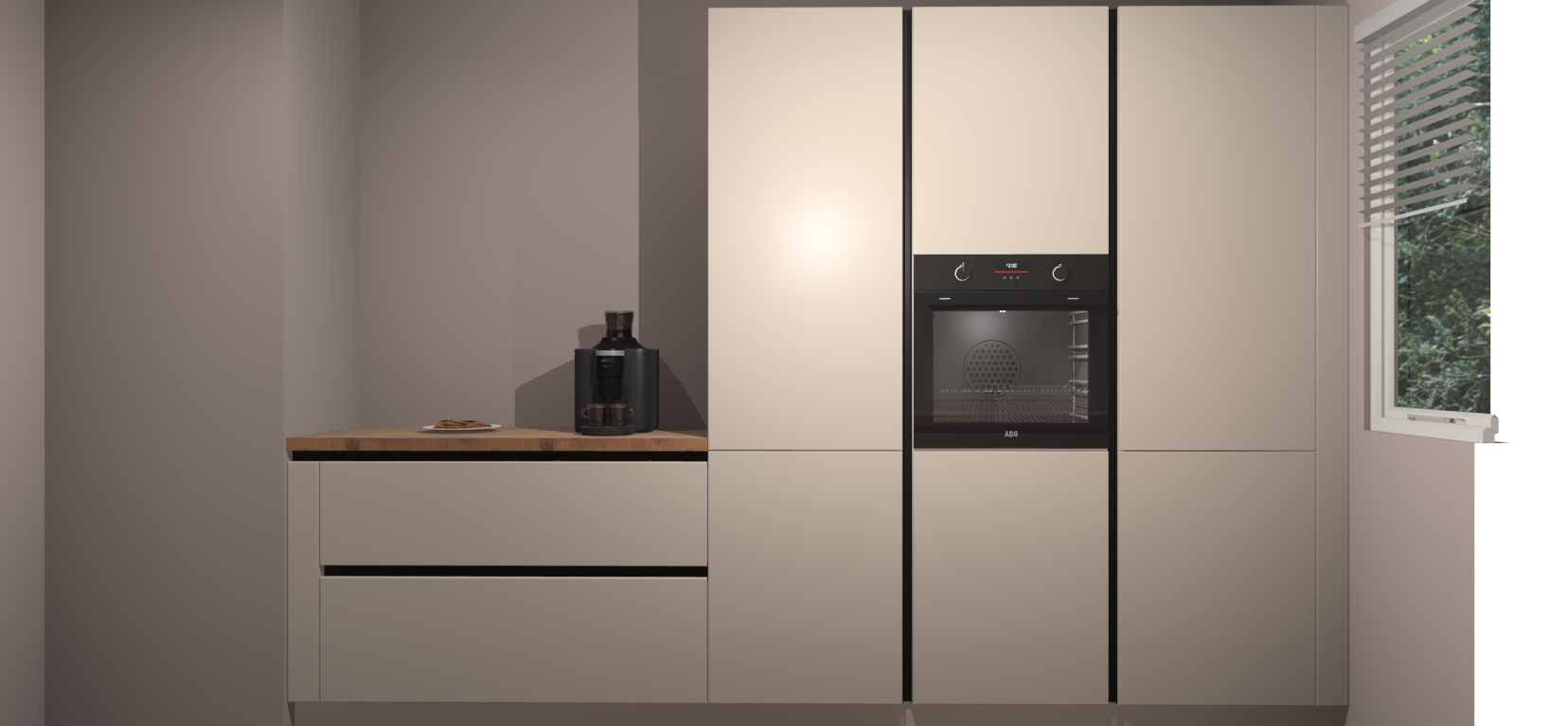 Een stijlvolle en praktische keuken als deze mag gezien worden. Dankzij de prachtige Kasjmier matte afwerking wordt de keuken gemakkelijk het middelpunt van uw huis - hij ziet er geweldig uit onder allerlei lichtomstandigheden, van dag tot nacht!