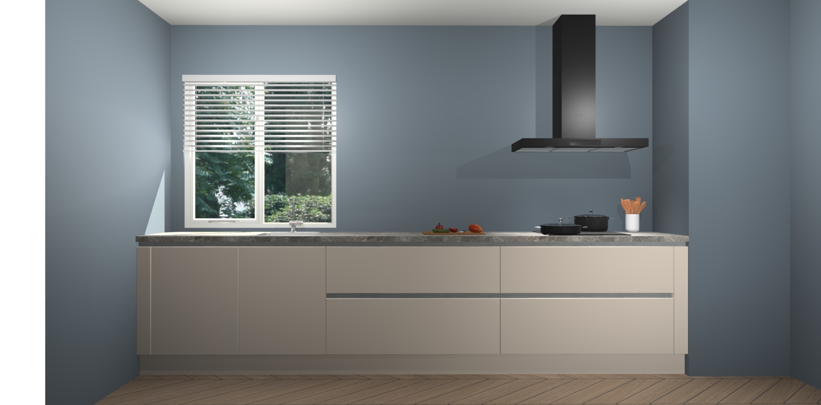 Een stijlvolle en praktische keuken als deze mag gezien worden. Dankzij de prachtige matte afwerking wordt de keuken gemakkelijk het middelpunt van uw huis - hij ziet er geweldig uit onder allerlei lichtomstandigheden, van dag tot nacht!