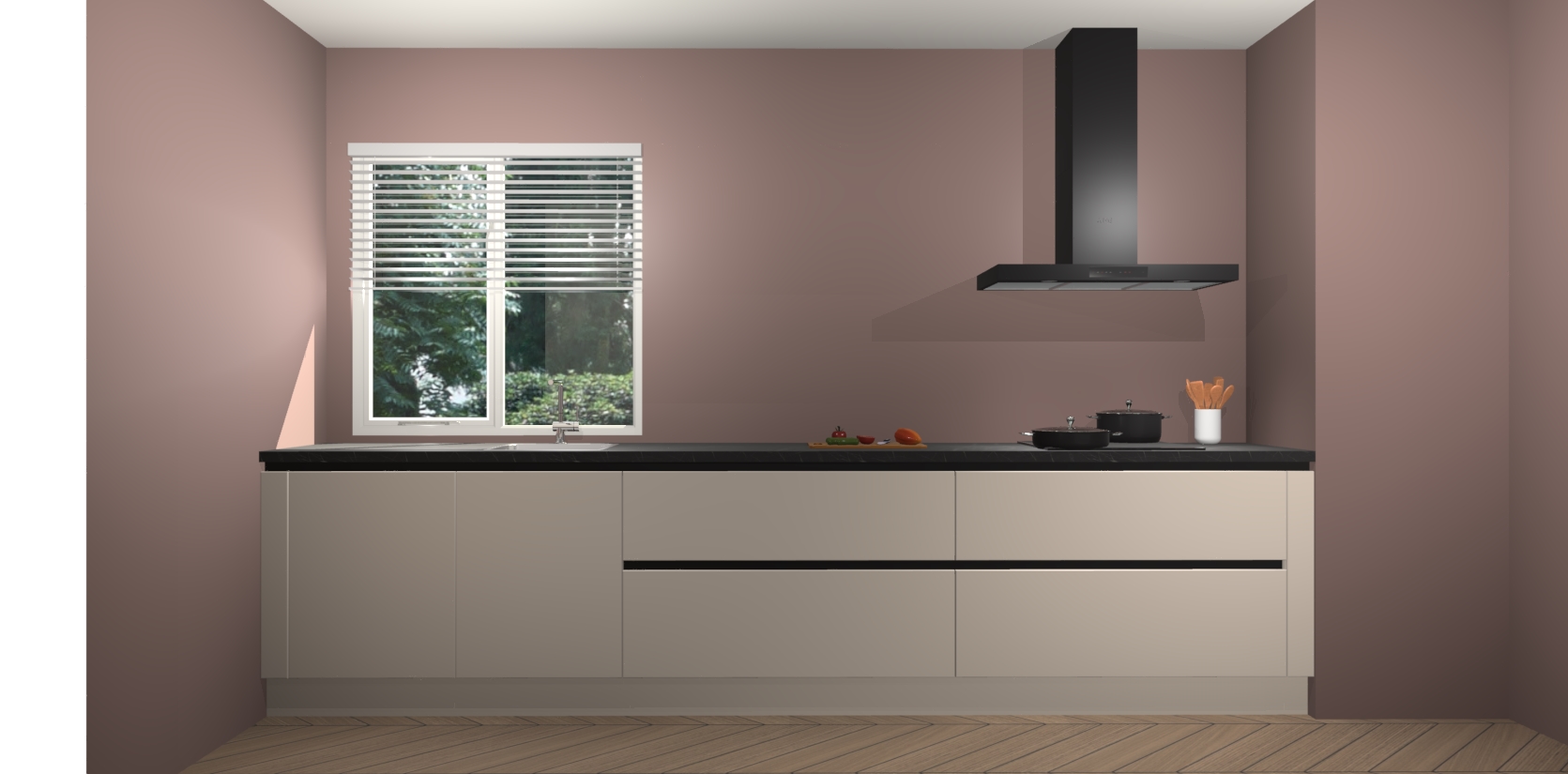 Een stijlvolle en praktische keuken als deze mag gezien worden. Dankzij de prachtige matte afwerking wordt de keuken gemakkelijk het middelpunt van uw huis - hij ziet er geweldig uit onder allerlei lichtomstandigheden, van dag tot nacht!