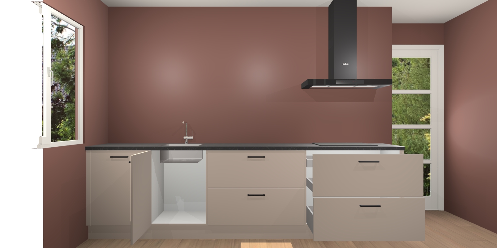 De softclose deuren openen en sluiten is ook heel eenvoudig - geniet van een moeiteloze keukenervaring, zelfs als er kinderen rondlopen. Voor extra gemak bij het plaatsen van uw bestelling bieden we ook een upgrade naar een kookplaat met geïntegreerde afzuiging.