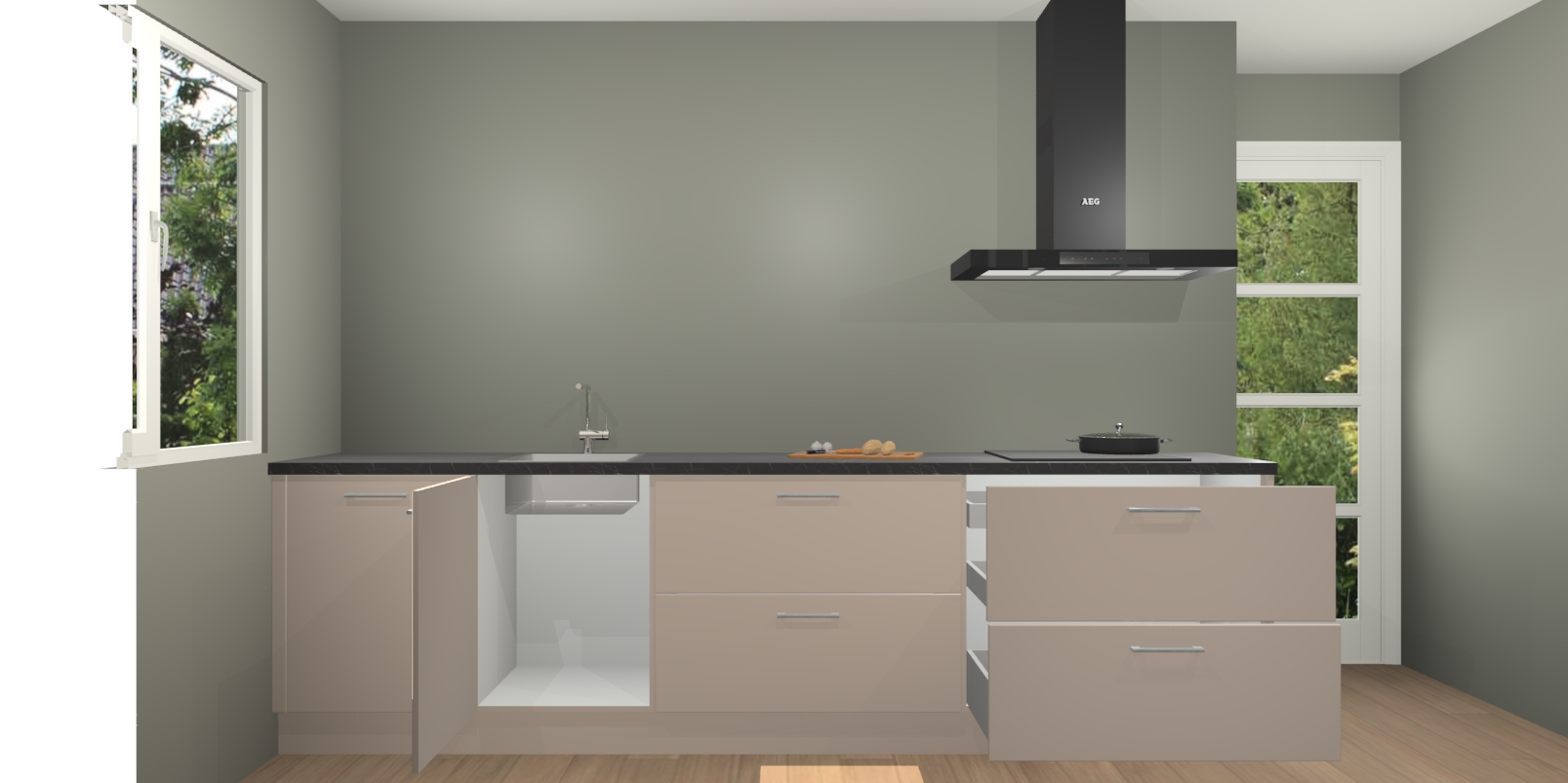 De softclose deuren openen en sluiten is ook heel eenvoudig - geniet van een moeiteloze keukenervaring, zelfs als er kinderen rondlopen. Voor extra gemak bij het plaatsen van uw bestelling bieden we ook een upgrade naar een kookplaat met geïntegreerde afzuiging.