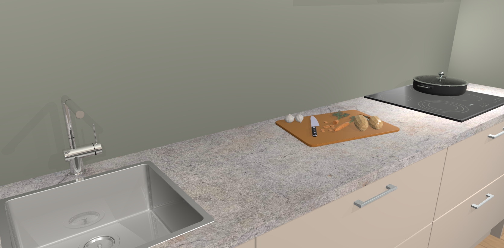 - Uitsparing van kookplaat, spoelbak en kraan dient u zelf te verzorgen.