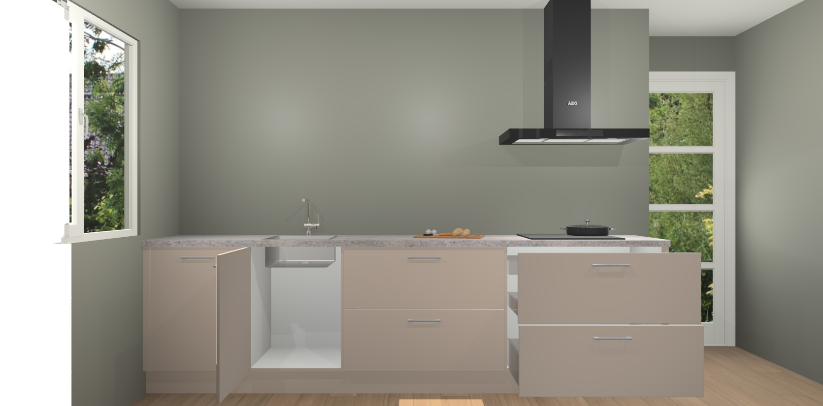 De softclose deuren openen en sluiten is ook heel eenvoudig - geniet van een moeiteloze keukenervaring, zelfs als er kinderen rondlopen. Voor extra gemak bij het plaatsen van uw bestelling bieden we ook een upgrade naar een kookplaat met geïntegreerde afzuiging.