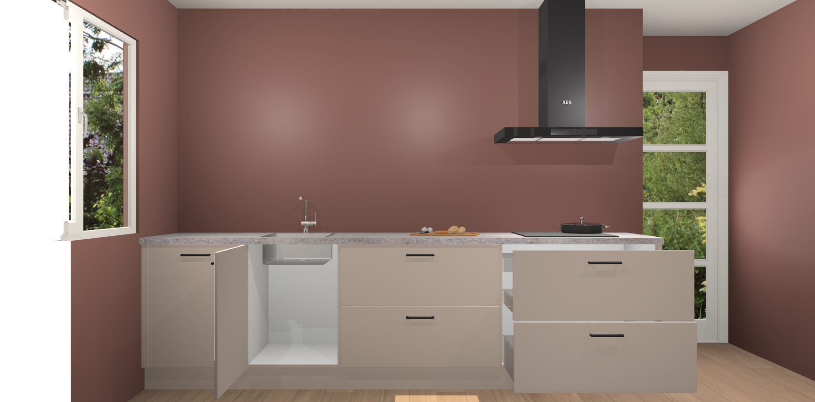 De softclose deuren openen en sluiten is ook heel eenvoudig - geniet van een moeiteloze keukenervaring, zelfs als er kinderen rondlopen. Voor extra gemak bij het plaatsen van uw bestelling bieden we ook een upgrade naar een kookplaat met geïntegreerde afzuiging.
