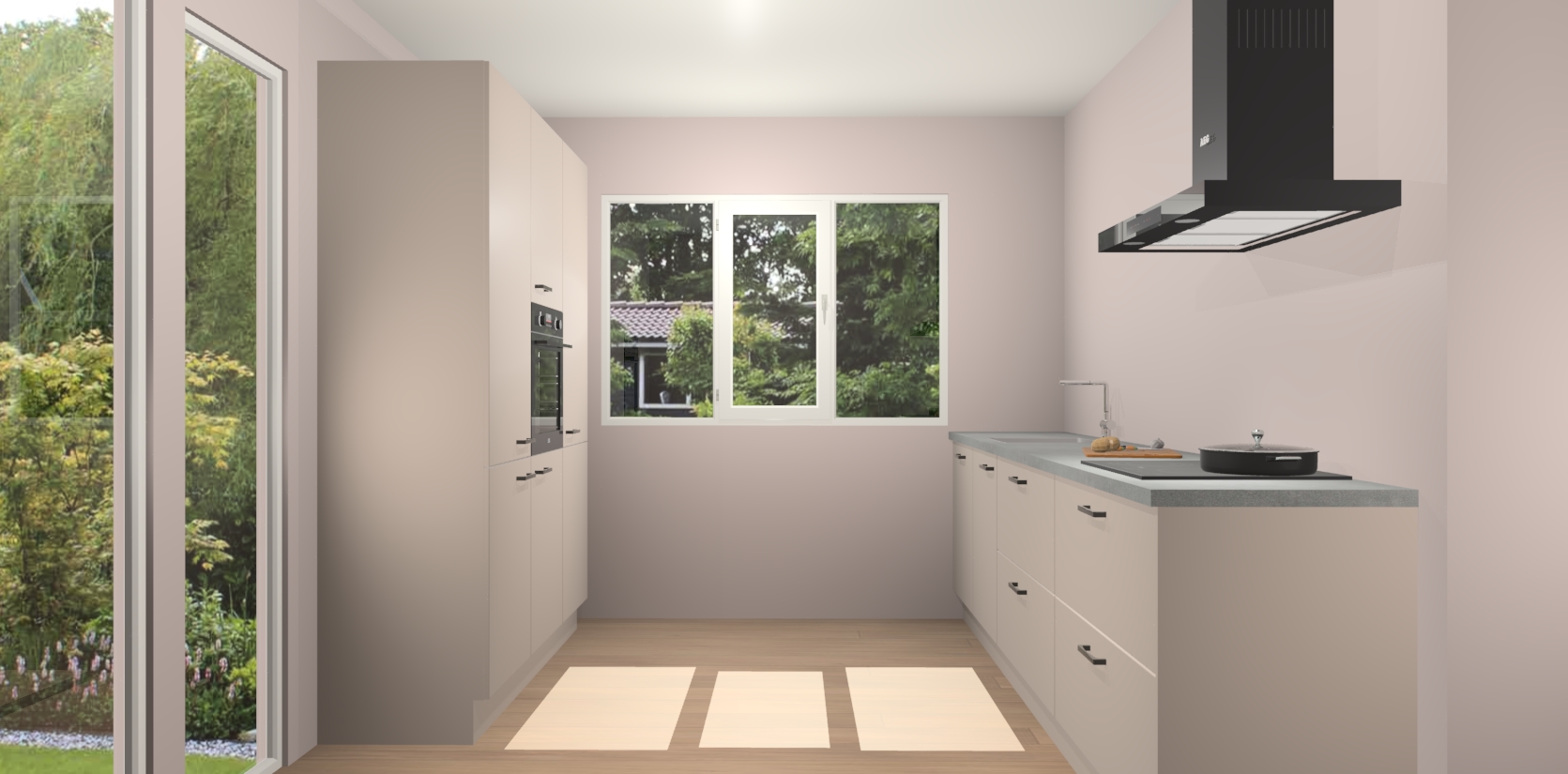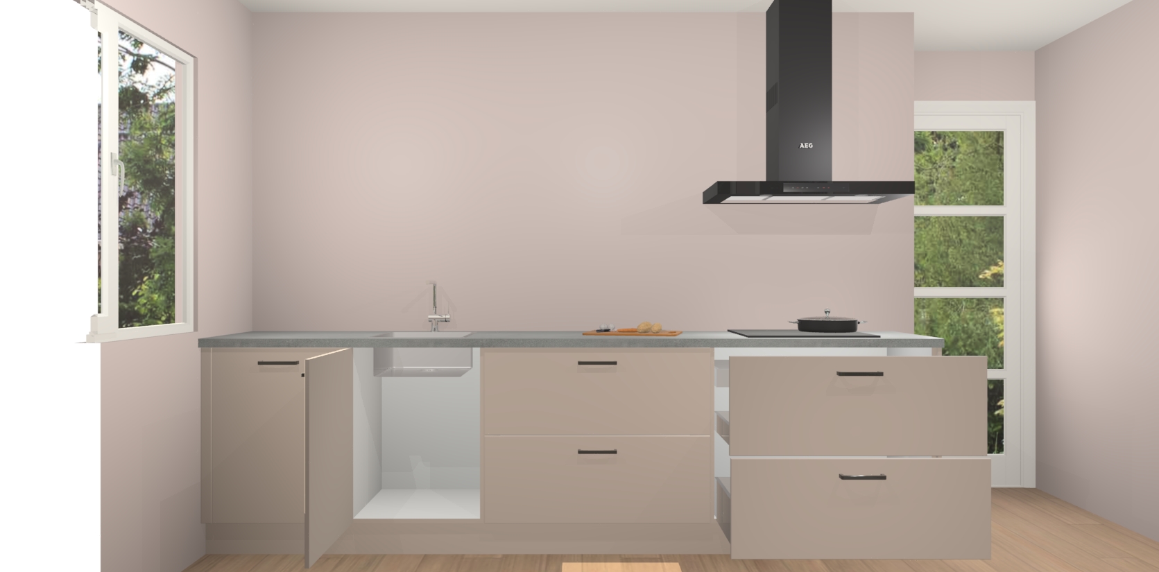 De softclose deuren openen en sluiten is ook heel eenvoudig - geniet van een moeiteloze keukenervaring, zelfs als er kinderen rondlopen. Voor extra gemak bij het plaatsen van uw bestelling bieden we ook een upgrade naar een kookplaat met geïntegreerde afzuiging.