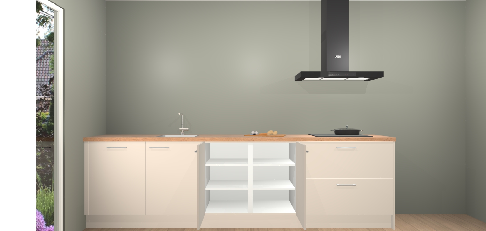 De softclose deuren openen en sluiten is ook heel eenvoudig - geniet van een moeiteloze keukenervaring, zelfs als er kinderen rondlopen. Voor extra gemak bij het plaatsen van uw bestelling bieden we ook een upgrade naar een kookplaat met geïntegreerde afzuiging.