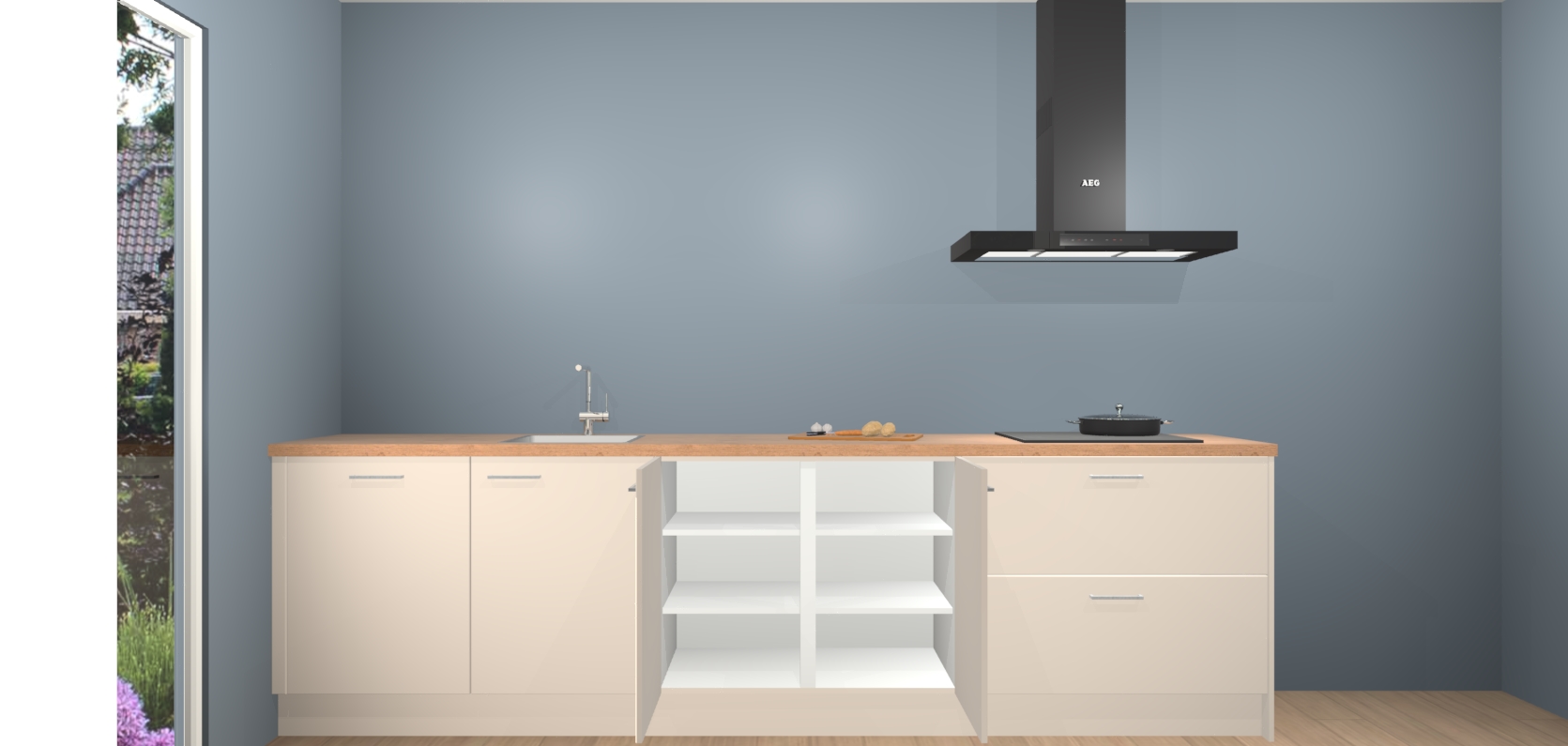 De softclose deuren openen en sluiten is ook heel eenvoudig - geniet van een moeiteloze keukenervaring, zelfs als er kinderen rondlopen. Voor extra gemak bij het plaatsen van uw bestelling bieden we ook een upgrade naar een kookplaat met geïntegreerde afzuiging.
