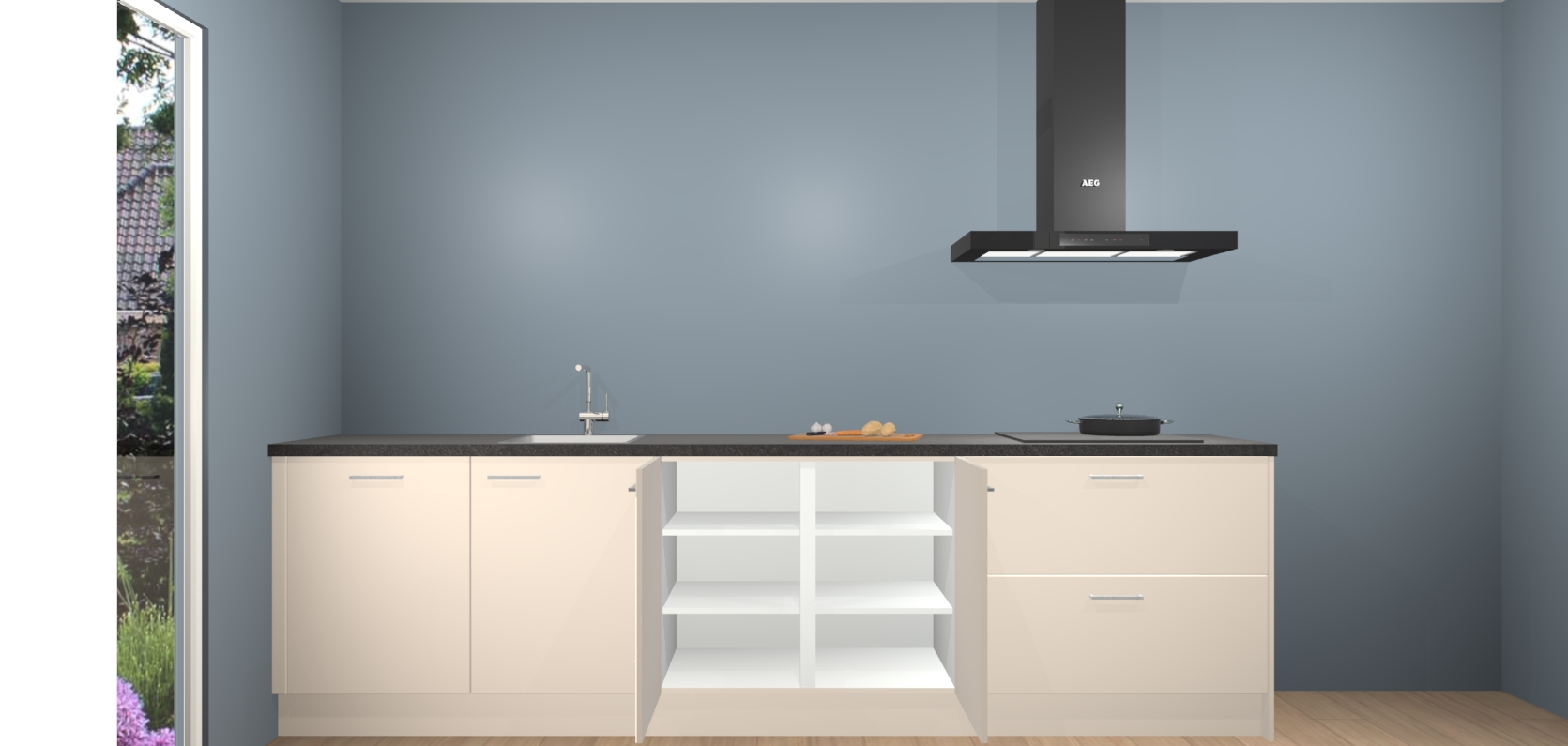 De softclose deuren openen en sluiten is ook heel eenvoudig - geniet van een moeiteloze keukenervaring, zelfs als er kinderen rondlopen. Voor extra gemak bij het plaatsen van uw bestelling bieden we ook een upgrade naar een kookplaat met geïntegreerde afzuiging.