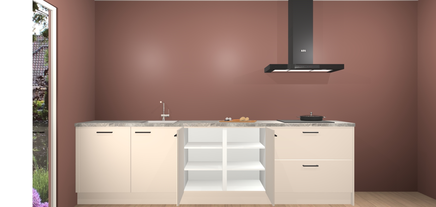 De softclose deuren openen en sluiten is ook heel eenvoudig - geniet van een moeiteloze keukenervaring, zelfs als er kinderen rondlopen. Voor extra gemak bij het plaatsen van uw bestelling bieden we ook een upgrade naar een kookplaat met geïntegreerde afzuiging.