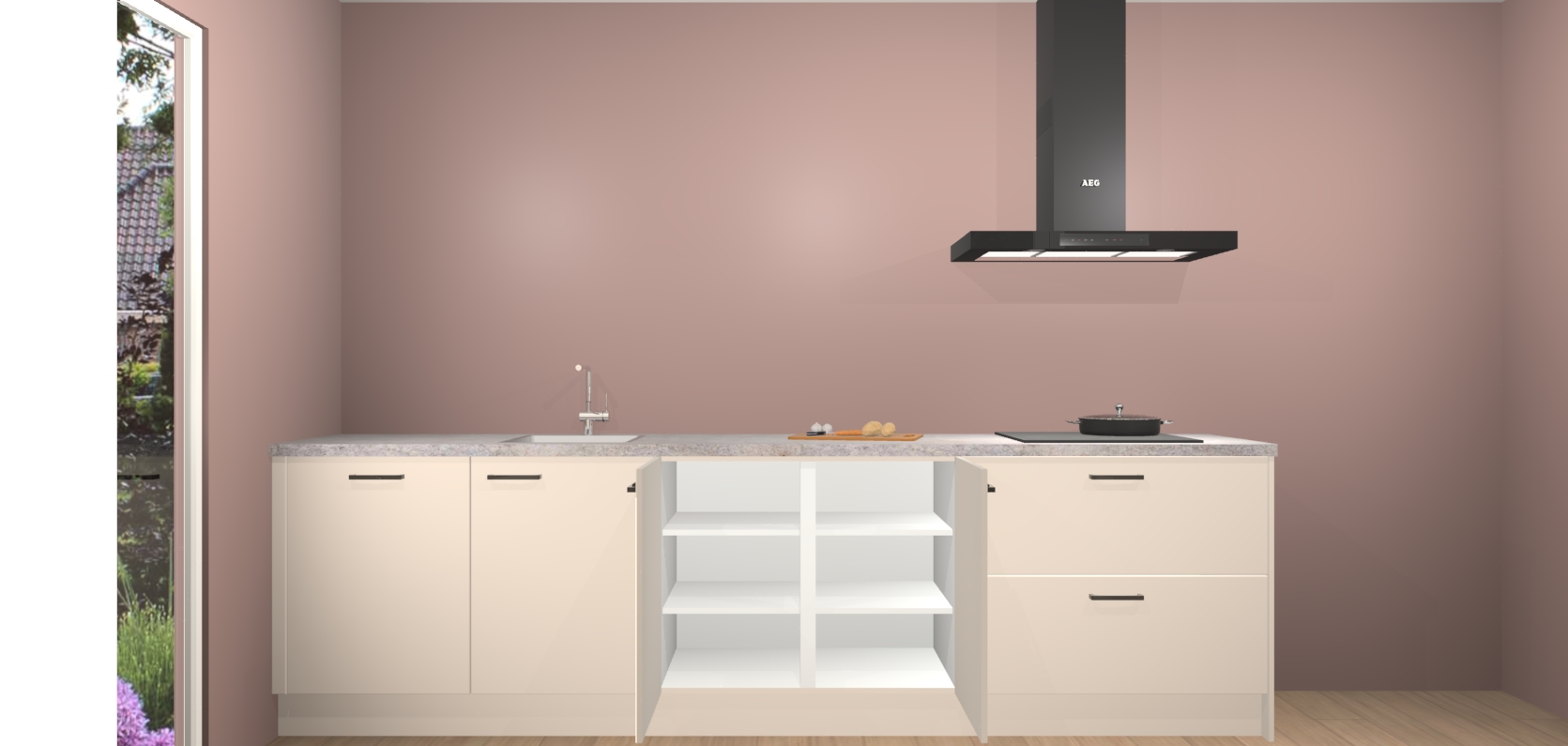 De softclose deuren openen en sluiten is ook heel eenvoudig - geniet van een moeiteloze keukenervaring, zelfs als er kinderen rondlopen. Voor extra gemak bij het plaatsen van uw bestelling bieden we ook een upgrade naar een kookplaat met geïntegreerde afzuiging.