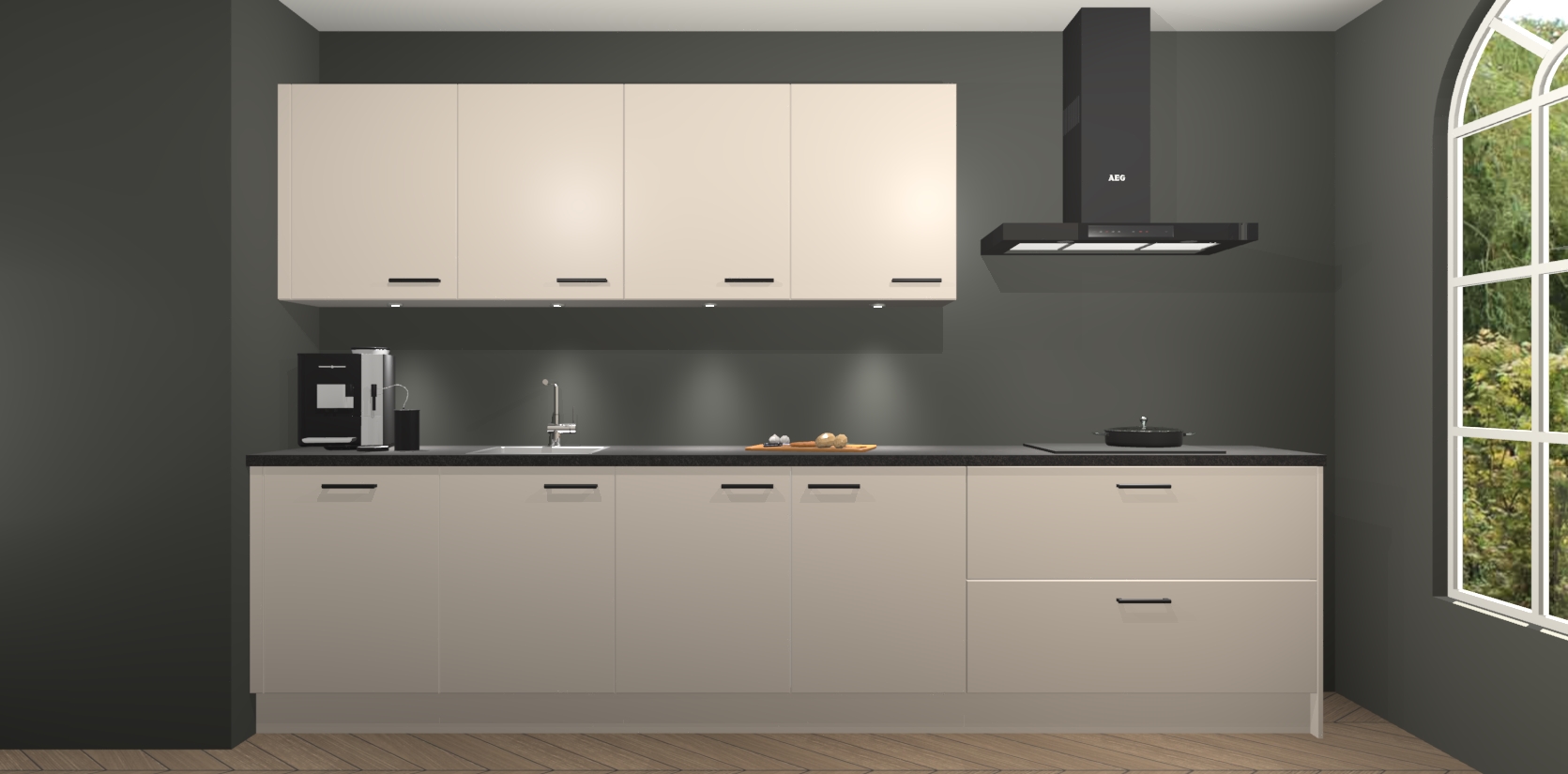 De softclose deuren openen en sluiten is ook heel eenvoudig - geniet van een moeiteloze keukenervaring, zelfs als er kinderen rondlopen. Voor extra gemak bij het plaatsen van uw bestelling bieden we ook een upgrade naar een kookplaat met geïntegreerde afzuiging.