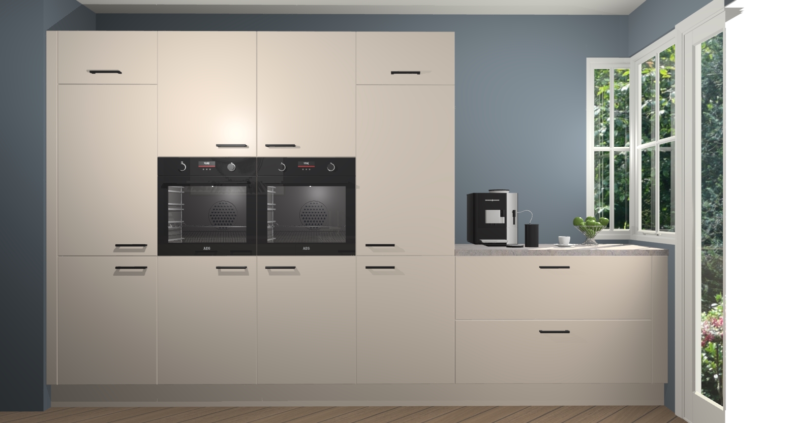 Een stijlvolle en praktische keuken als deze mag gezien worden. Dankzij de prachtige kasjmier matte afwerking wordt de keuken gemakkelijk het middelpunt van uw huis - hij ziet er geweldig uit onder allerlei lichtomstandigheden, van dag tot nacht!