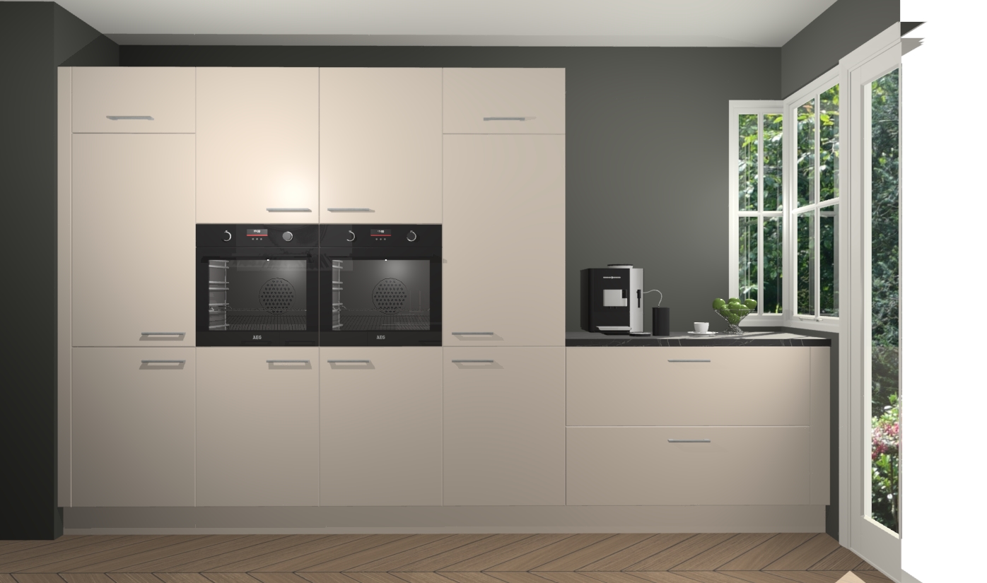 Een stijlvolle en praktische keuken als deze mag gezien worden. Dankzij de prachtige kasjmier matte afwerking wordt de keuken gemakkelijk het middelpunt van uw huis - hij ziet er geweldig uit onder allerlei lichtomstandigheden, van dag tot nacht!