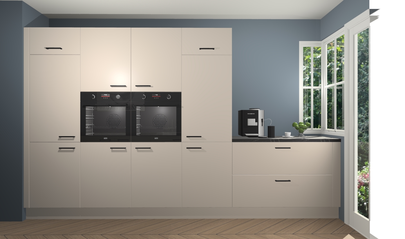 Een stijlvolle en praktische keuken als deze mag gezien worden. Dankzij de prachtige kasjmier matte afwerking wordt de keuken gemakkelijk het middelpunt van uw huis - hij ziet er geweldig uit onder allerlei lichtomstandigheden, van dag tot nacht!