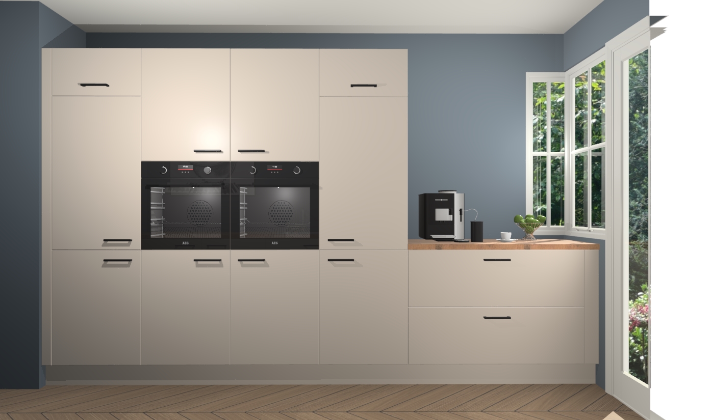 Een stijlvolle en praktische keuken als deze mag gezien worden. Dankzij de prachtige kasjmier matte afwerking wordt de keuken gemakkelijk het middelpunt van uw huis - hij ziet er geweldig uit onder allerlei lichtomstandigheden, van dag tot nacht!