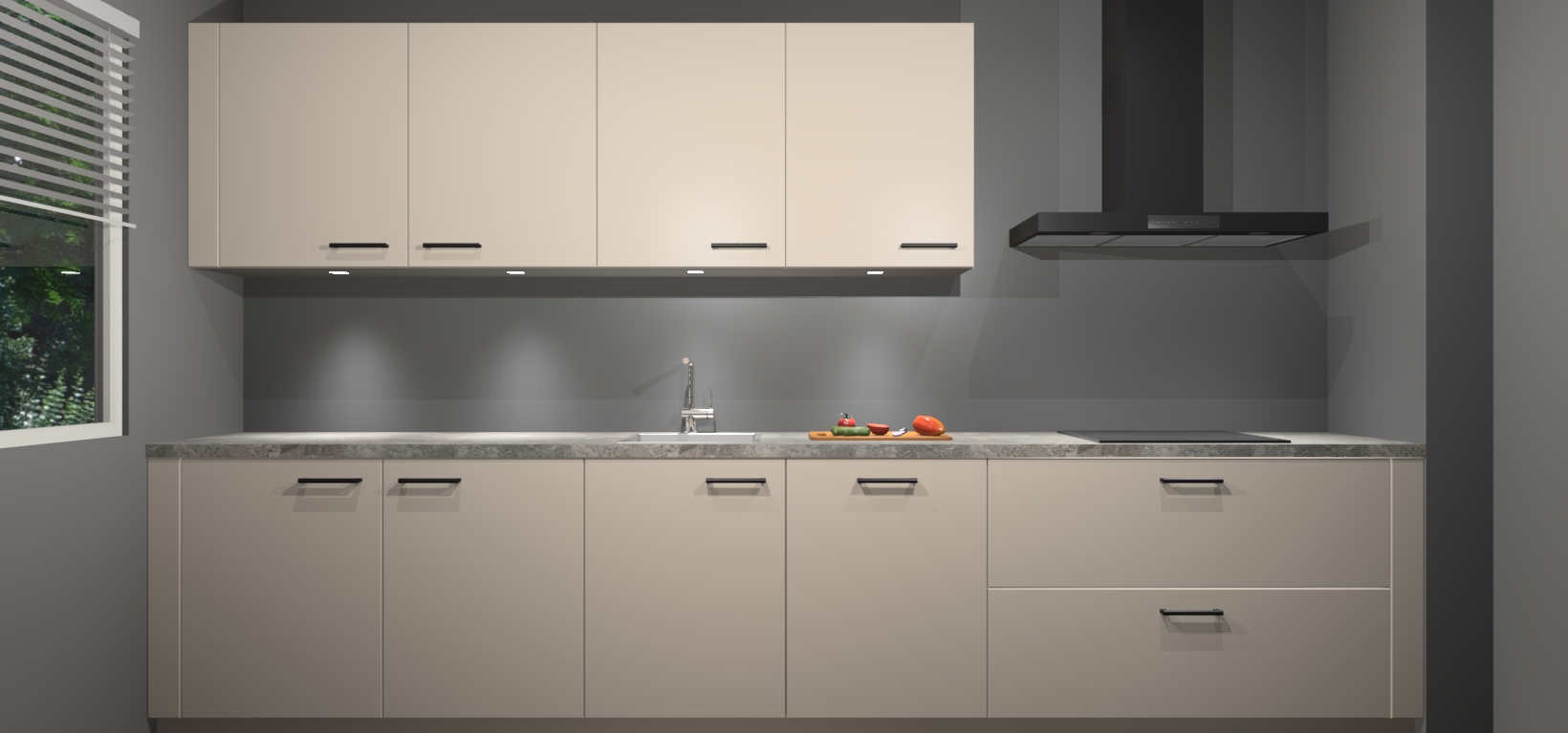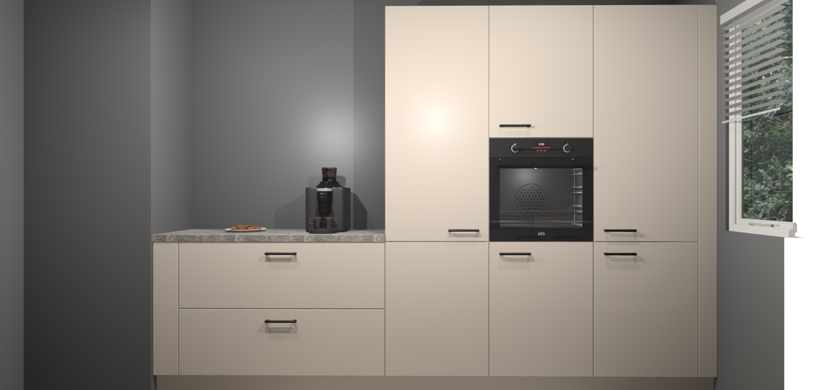Een stijlvolle en praktische keuken als deze mag gezien worden. Dankzij de prachtige Kasjmier matte afwerking wordt de keuken gemakkelijk het middelpunt van uw huis - hij ziet er geweldig uit onder allerlei lichtomstandigheden, van dag tot nacht!