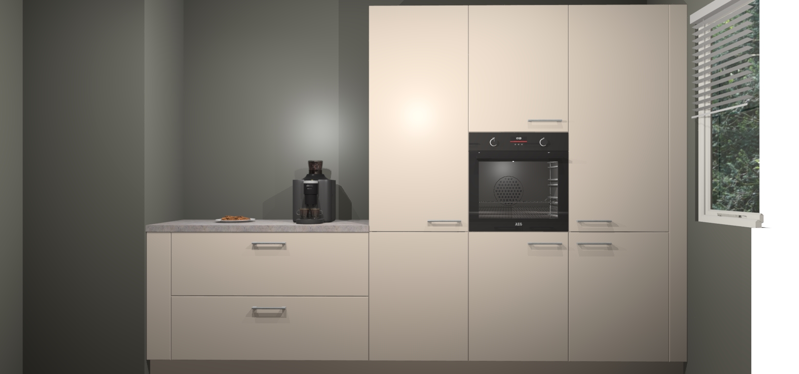 Een stijlvolle en praktische keuken als deze mag gezien worden. Dankzij de prachtige Kasjmier matte afwerking wordt de keuken gemakkelijk het middelpunt van uw huis - hij ziet er geweldig uit onder allerlei lichtomstandigheden, van dag tot nacht!