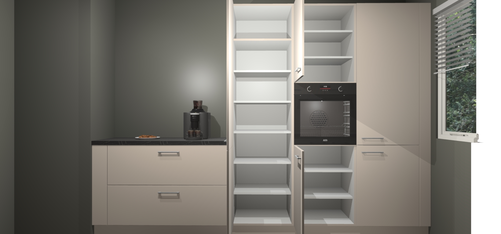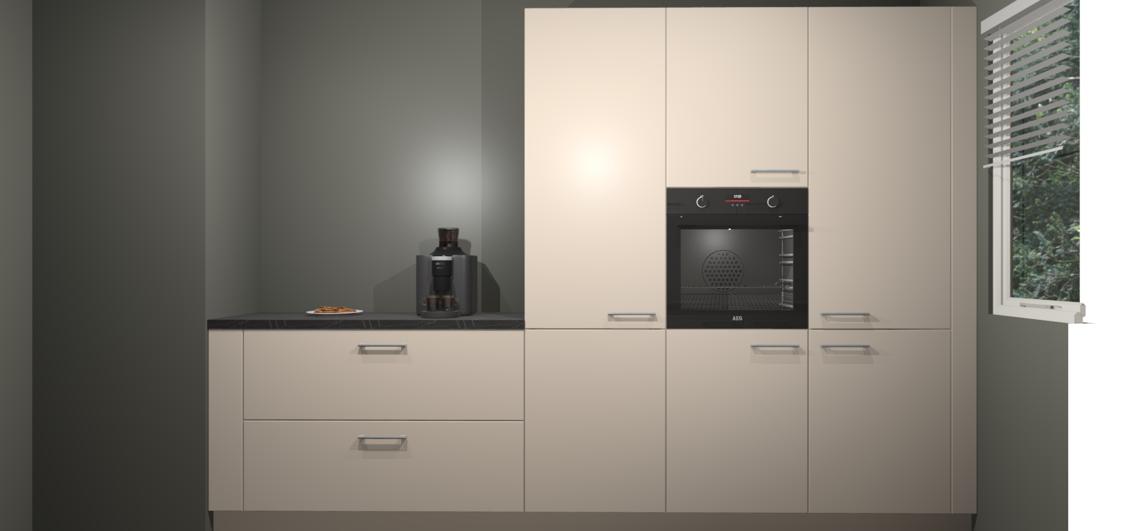 Een stijlvolle en praktische keuken als deze mag gezien worden. Dankzij de prachtige Kasjmier matte afwerking wordt de keuken gemakkelijk het middelpunt van uw huis - hij ziet er geweldig uit onder allerlei lichtomstandigheden, van dag tot nacht!