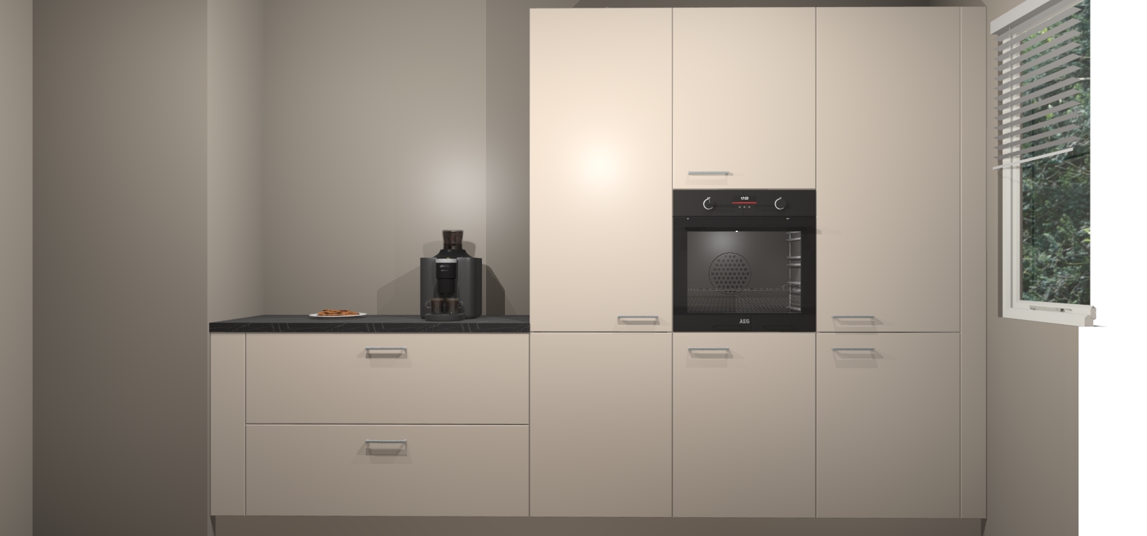 Een stijlvolle en praktische keuken als deze mag gezien worden. Dankzij de prachtige Kasjmier matte afwerking wordt de keuken gemakkelijk het middelpunt van uw huis - hij ziet er geweldig uit onder allerlei lichtomstandigheden, van dag tot nacht!