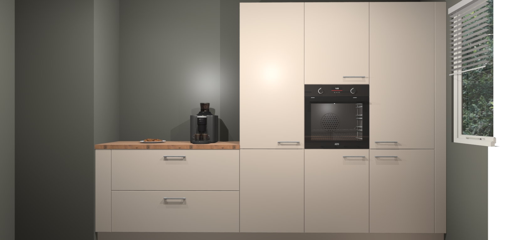 Een stijlvolle en praktische keuken als deze mag gezien worden. Dankzij de prachtige Kasjmier matte afwerking wordt de keuken gemakkelijk het middelpunt van uw huis - hij ziet er geweldig uit onder allerlei lichtomstandigheden, van dag tot nacht!