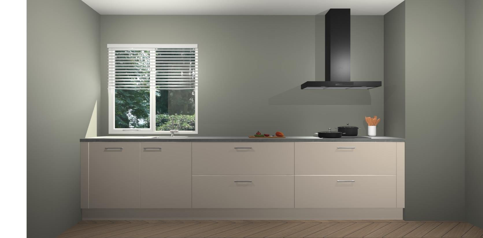Een stijlvolle en praktische keuken als deze mag gezien worden. Dankzij de prachtige matte afwerking wordt de keuken gemakkelijk het middelpunt van uw huis - hij ziet er geweldig uit onder allerlei lichtomstandigheden, van dag tot nacht!