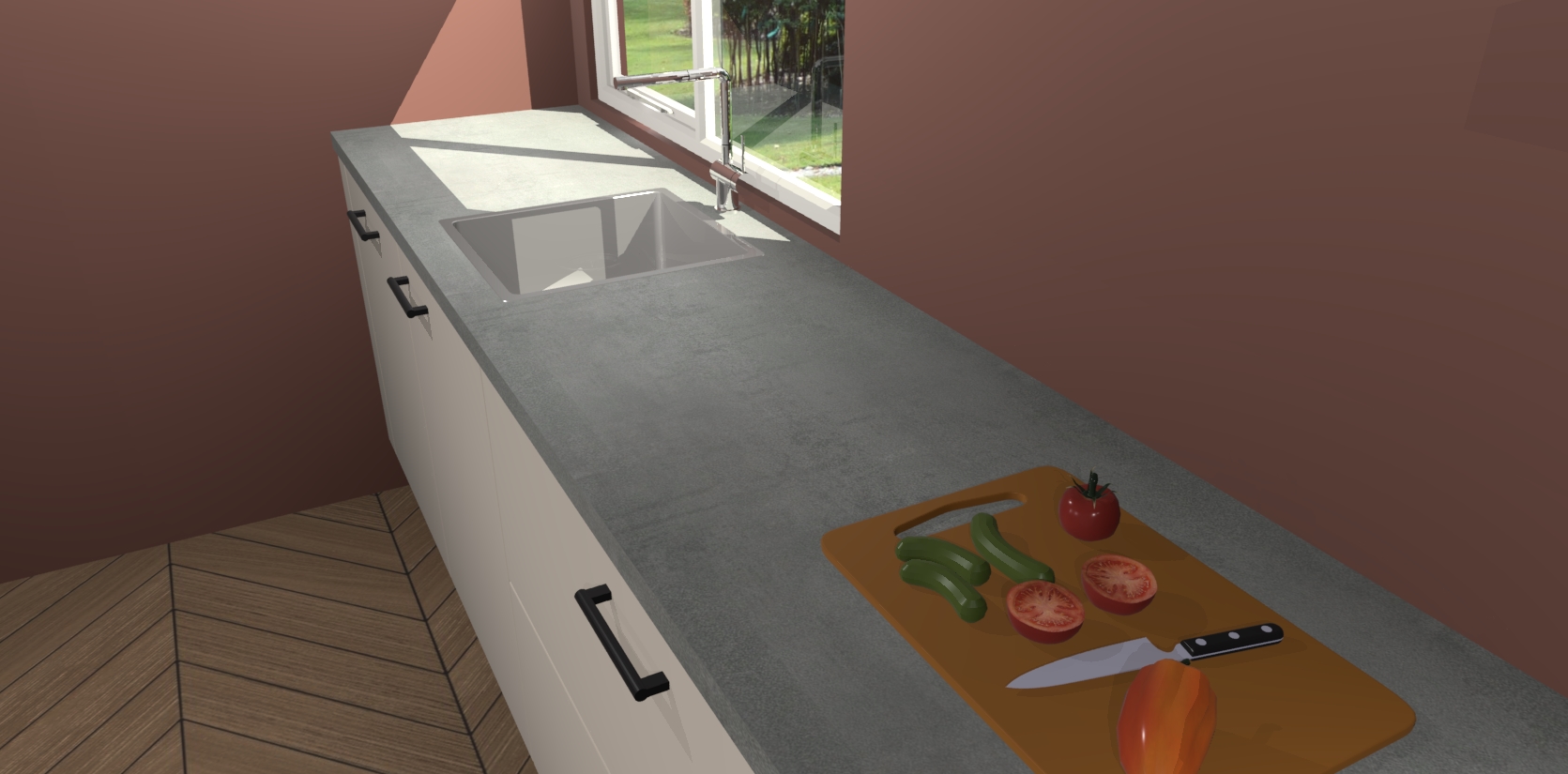 - Bij een hoekwerkblad zijn de hoeken in gevreesd en op maat gemaakt