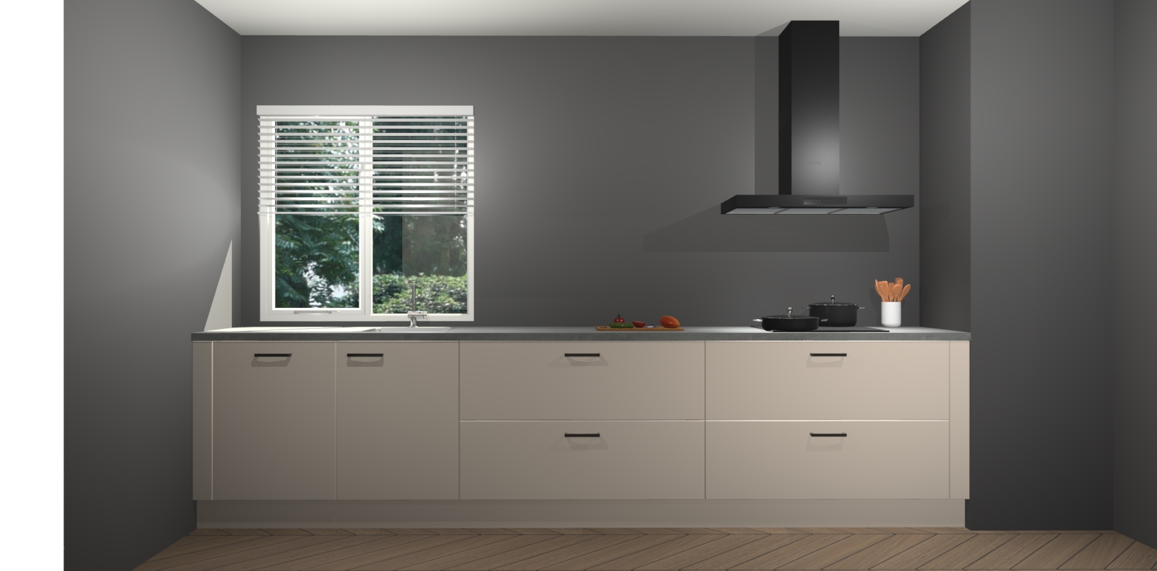 Een stijlvolle en praktische keuken als deze mag gezien worden. Dankzij de prachtige matte afwerking wordt de keuken gemakkelijk het middelpunt van uw huis - hij ziet er geweldig uit onder allerlei lichtomstandigheden, van dag tot nacht!
