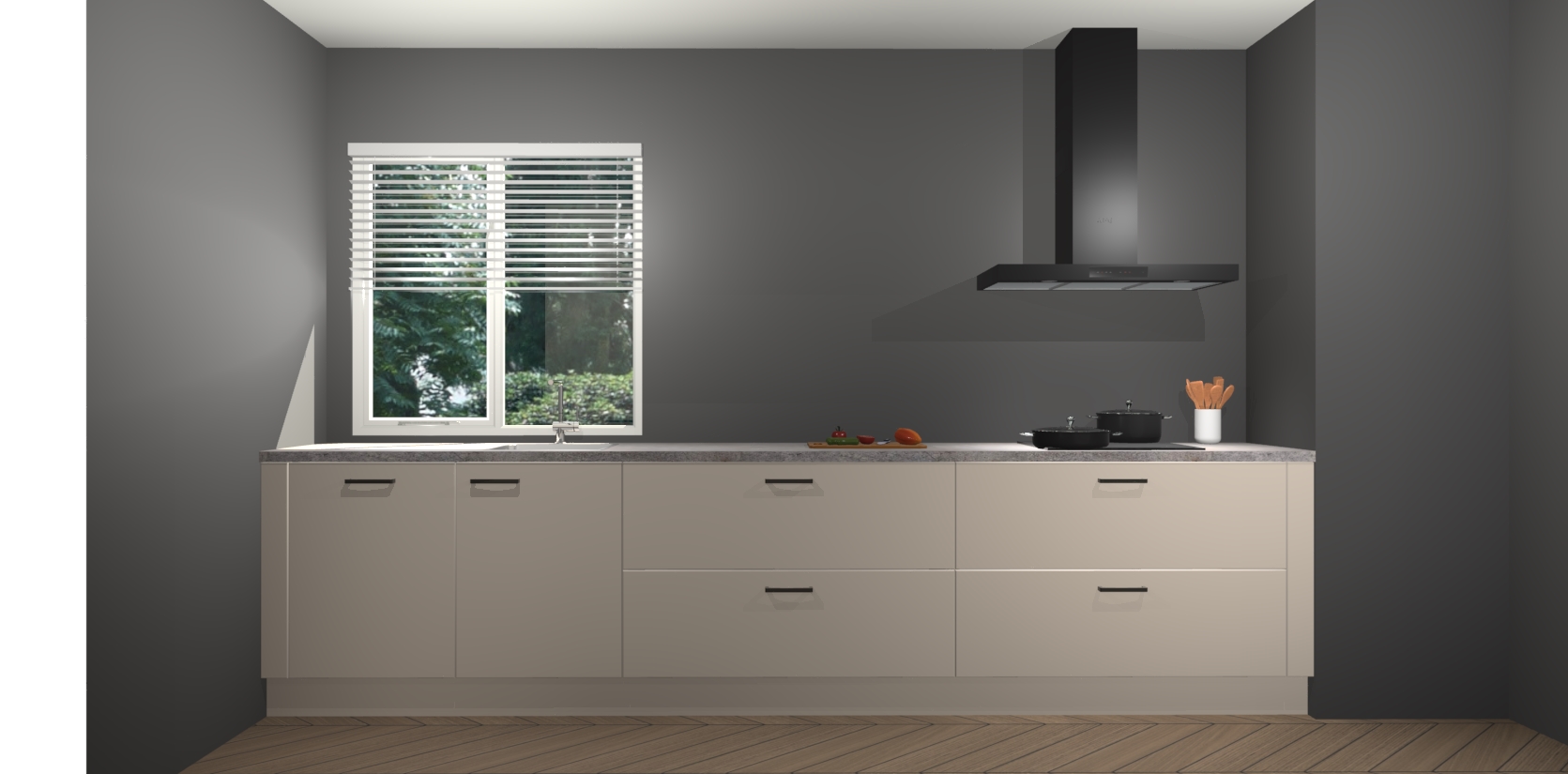 Een stijlvolle en praktische keuken als deze mag gezien worden. Dankzij de prachtige matte afwerking wordt de keuken gemakkelijk het middelpunt van uw huis - hij ziet er geweldig uit onder allerlei lichtomstandigheden, van dag tot nacht!