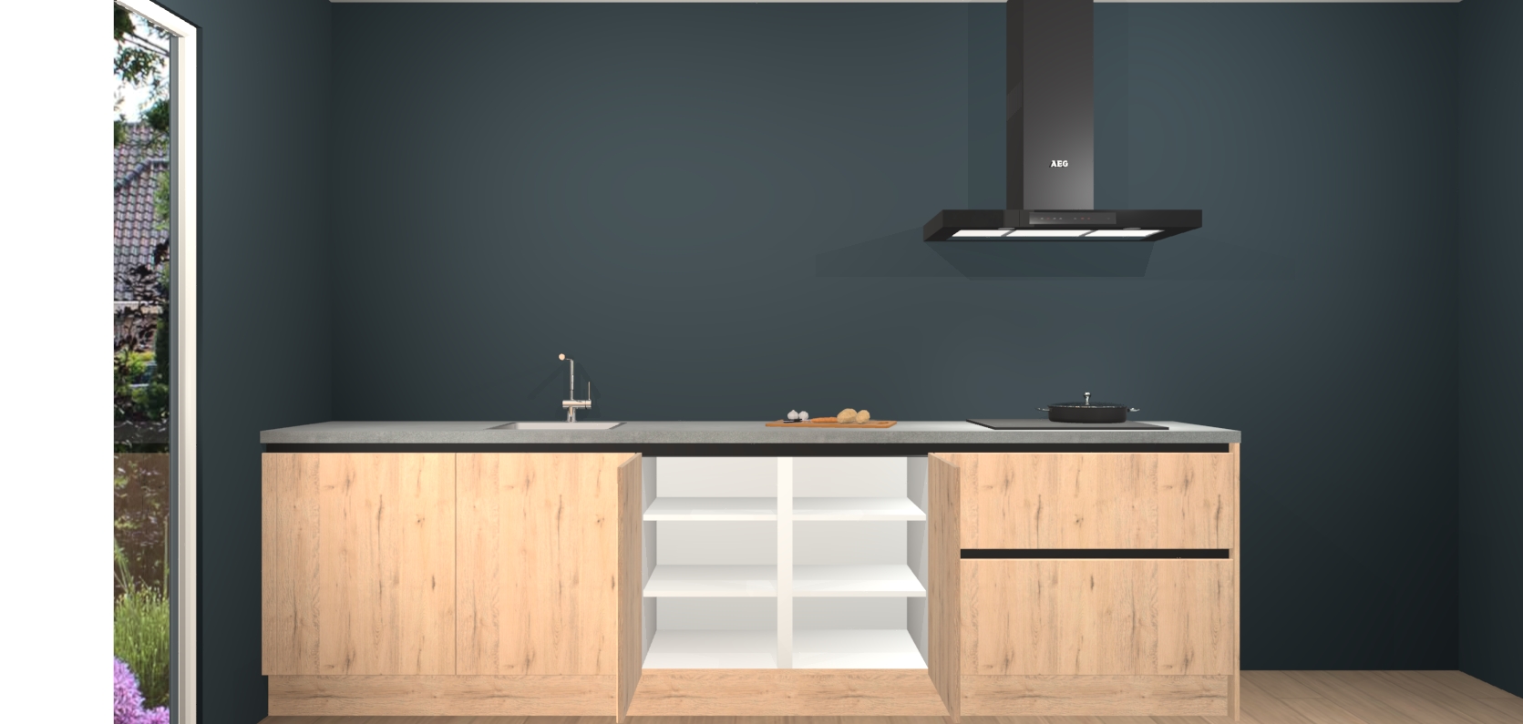 De softclose deuren openen en sluiten is ook heel eenvoudig - geniet van een moeiteloze keukenervaring, zelfs als er kinderen rondlopen. Voor extra gemak bij het plaatsen van uw bestelling bieden we ook een upgrade naar een kookplaat met geïntegreerde afzuiging.