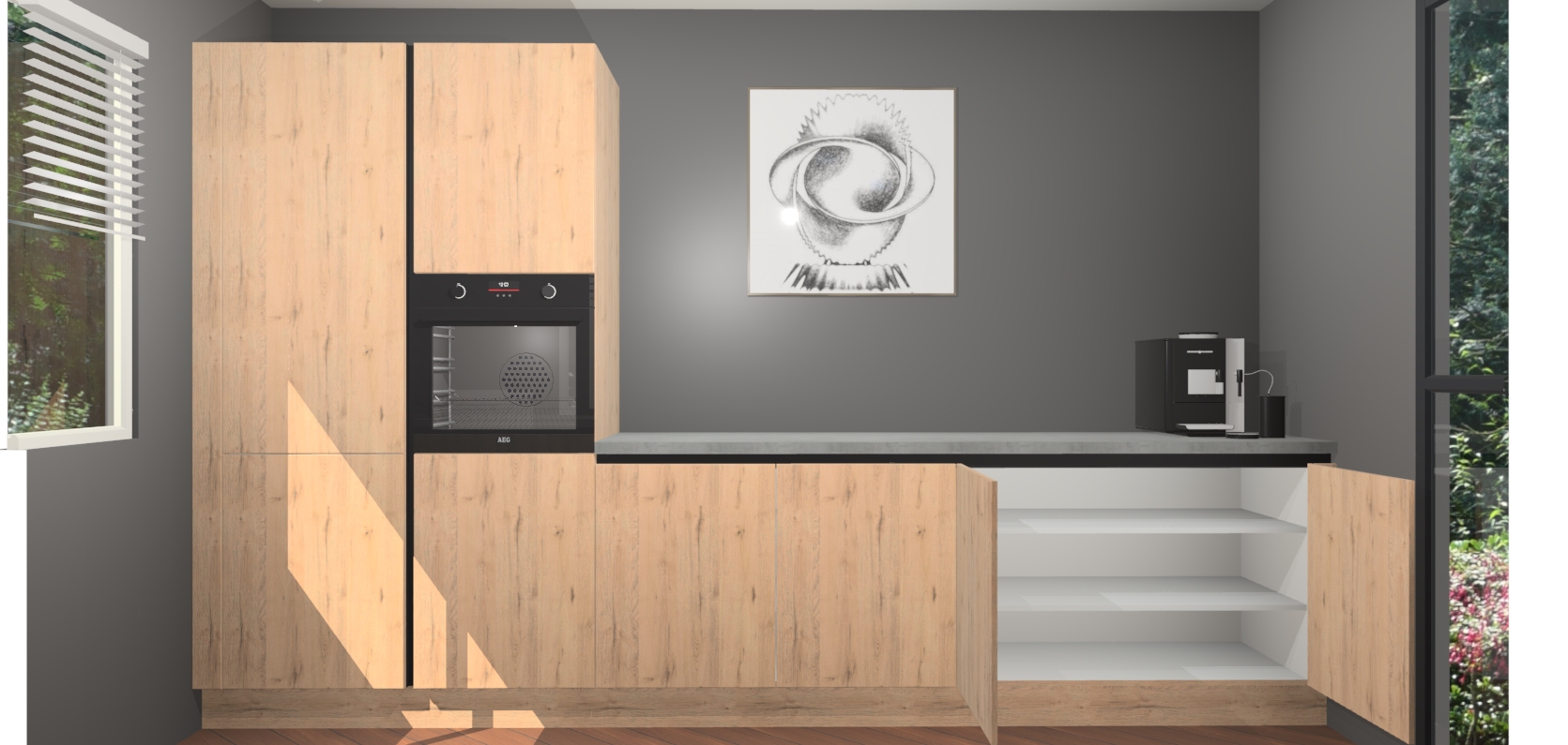 Welkom bij de Madera Natuur greeploze keuken Lusaka. Deze prachtige keuken zal de komende jaren het middelpunt van de belangstelling in uw huis zijn. Uitgerust met vijf inbouwapparaten komt u nooit kookgereedschap tekort. Bovendien geeft de warme houtlook elke ruimte een uitnodigende en tijdloze uitstraling.
