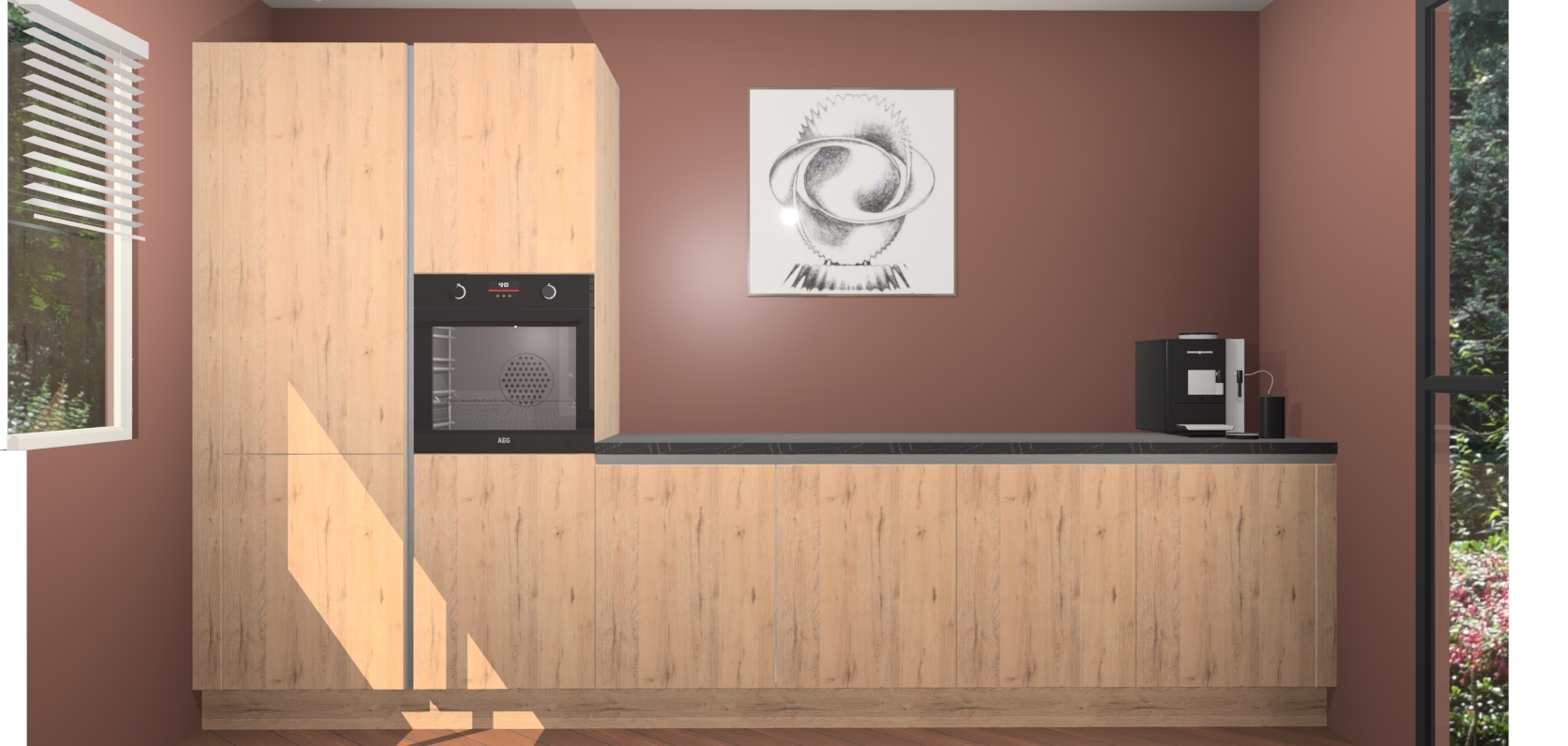 Welkom bij de Madera Natuur greeploze keuken Lusaka. Deze prachtige keuken zal de komende jaren het middelpunt van de belangstelling in uw huis zijn. Uitgerust met vijf inbouwapparaten komt u nooit kookgereedschap tekort. Bovendien geeft de warme houtlook elke ruimte een uitnodigende en tijdloze uitstraling.