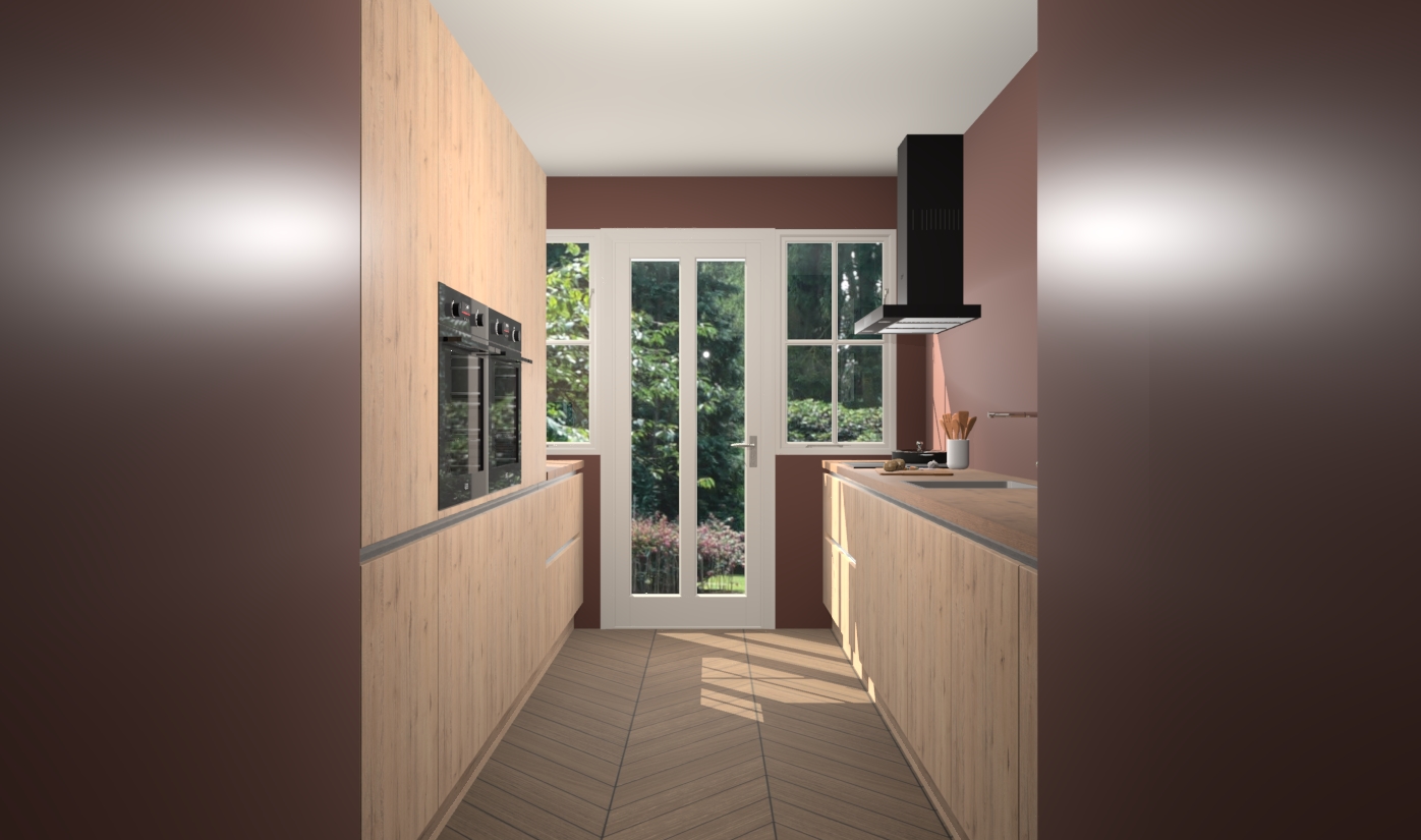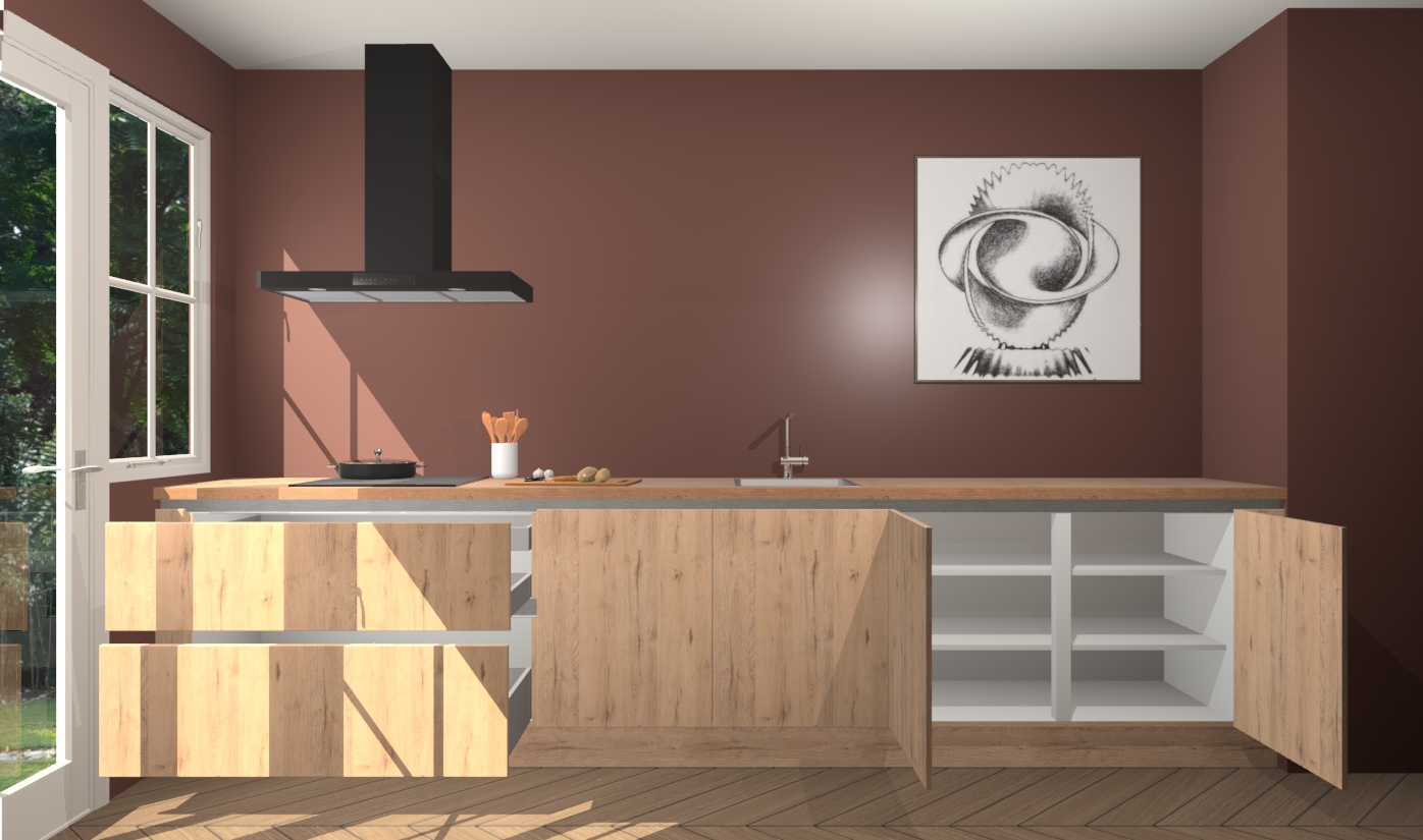 Een stijlvolle en praktische keuken als deze mag gezien worden. Dankzij de prachtige madera natuur matte afwerking wordt de keuken gemakkelijk het middelpunt van uw huis - hij ziet er geweldig uit onder allerlei lichtomstandigheden, van dag tot nacht!