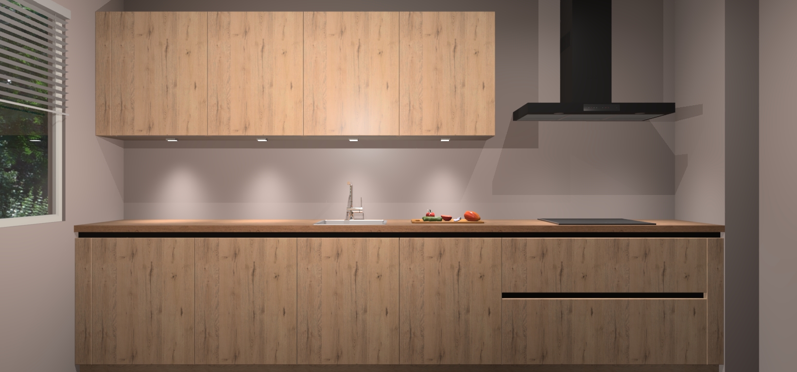 Een stijlvolle en praktische keuken als deze mag gezien worden. Dankzij de prachtige Madera Natuur matte afwerking wordt de keuken gemakkelijk het middelpunt van uw huis - hij ziet er geweldig uit onder allerlei lichtomstandigheden, van dag tot nacht!