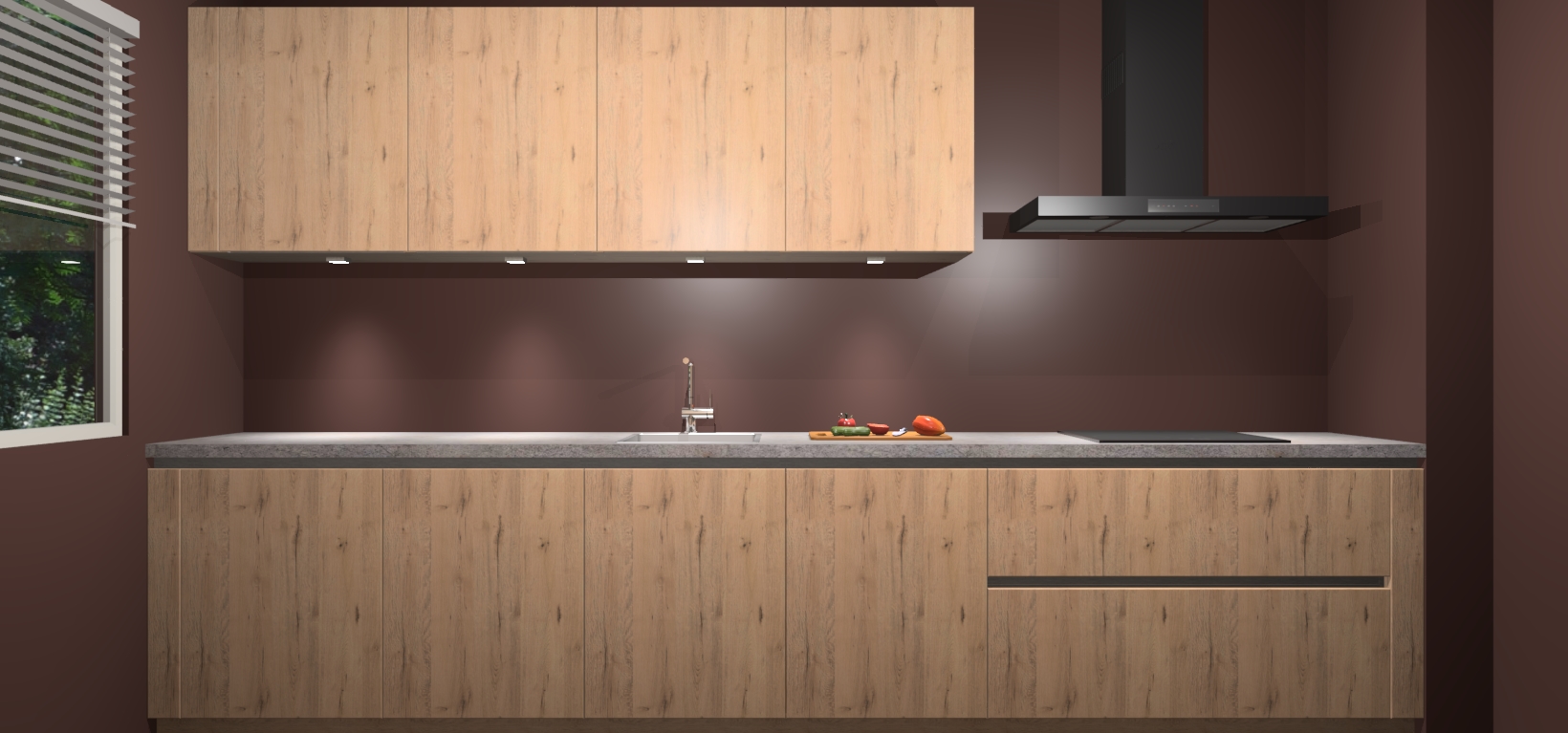 Een stijlvolle en praktische keuken als deze mag gezien worden. Dankzij de prachtige Madera Natuur matte afwerking wordt de keuken gemakkelijk het middelpunt van uw huis - hij ziet er geweldig uit onder allerlei lichtomstandigheden, van dag tot nacht!