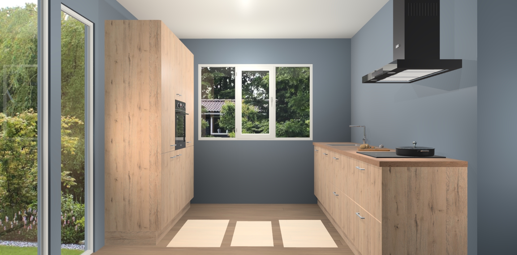 De softclose deuren openen en sluiten is ook heel eenvoudig - geniet van een moeiteloze keukenervaring, zelfs als er kinderen rondlopen. Voor extra gemak bij het plaatsen van uw bestelling bieden we ook een upgrade naar een kookplaat met geïntegreerde afzuiging.