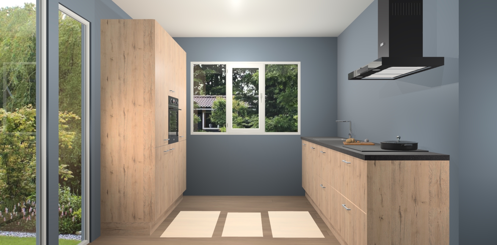De softclose deuren openen en sluiten is ook heel eenvoudig - geniet van een moeiteloze keukenervaring, zelfs als er kinderen rondlopen. Voor extra gemak bij het plaatsen van uw bestelling bieden we ook een upgrade naar een kookplaat met geïntegreerde afzuiging.