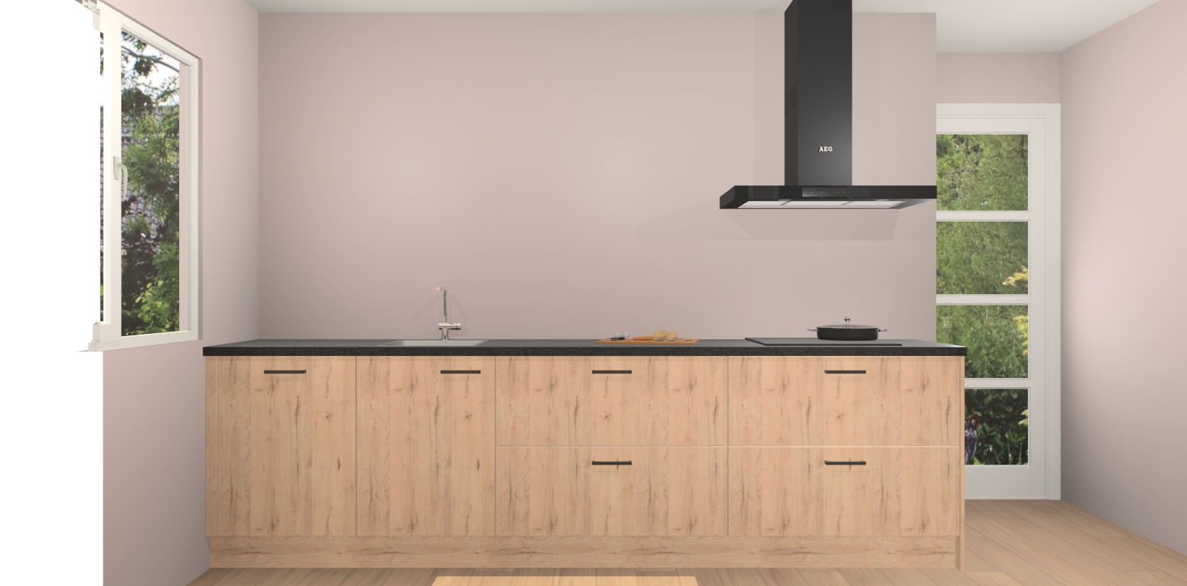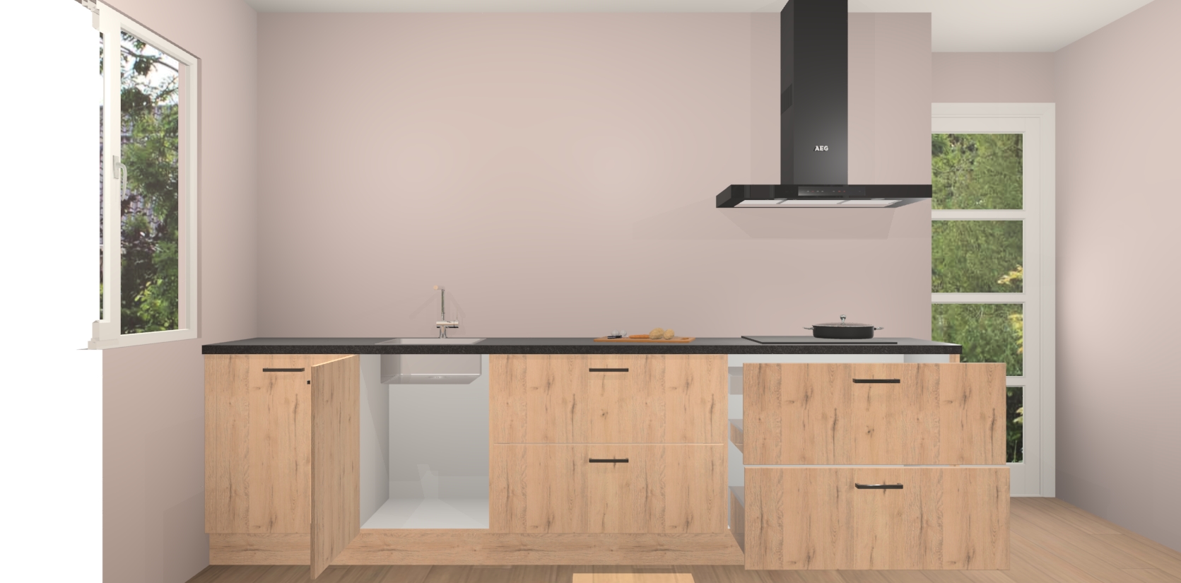 De softclose deuren openen en sluiten is ook heel eenvoudig - geniet van een moeiteloze keukenervaring, zelfs als er kinderen rondlopen. Voor extra gemak bij het plaatsen van uw bestelling bieden we ook een upgrade naar een kookplaat met geïntegreerde afzuiging.