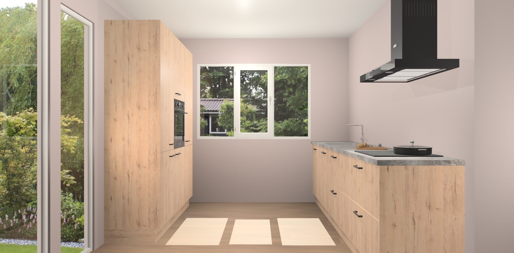 De softclose deuren openen en sluiten is ook heel eenvoudig - geniet van een moeiteloze keukenervaring, zelfs als er kinderen rondlopen. Voor extra gemak bij het plaatsen van uw bestelling bieden we ook een upgrade naar een kookplaat met geïntegreerde afzuiging.