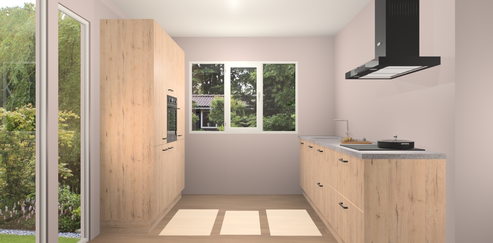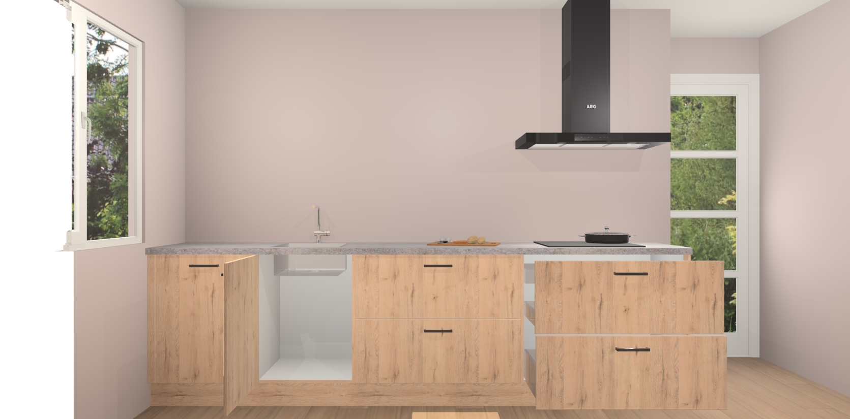De softclose deuren openen en sluiten is ook heel eenvoudig - geniet van een moeiteloze keukenervaring, zelfs als er kinderen rondlopen. Voor extra gemak bij het plaatsen van uw bestelling bieden we ook een upgrade naar een kookplaat met geïntegreerde afzuiging.