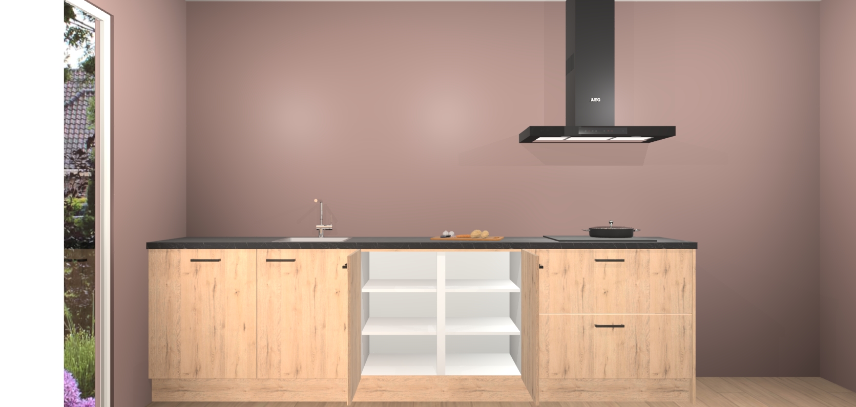 De softclose deuren openen en sluiten is ook heel eenvoudig - geniet van een moeiteloze keukenervaring, zelfs als er kinderen rondlopen. Voor extra gemak bij het plaatsen van uw bestelling bieden we ook een upgrade naar een kookplaat met geïntegreerde afzuiging.